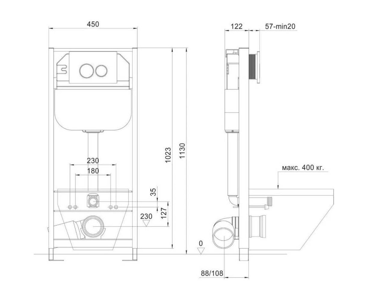 Инсталляция для подвесного унитаза с клавишей смыва WIRK хром, шумоизоляция, крепление W0101 Chrome предназначена для установки подвесного унитаза с межосевым подключением 180 мм и 230 мм
