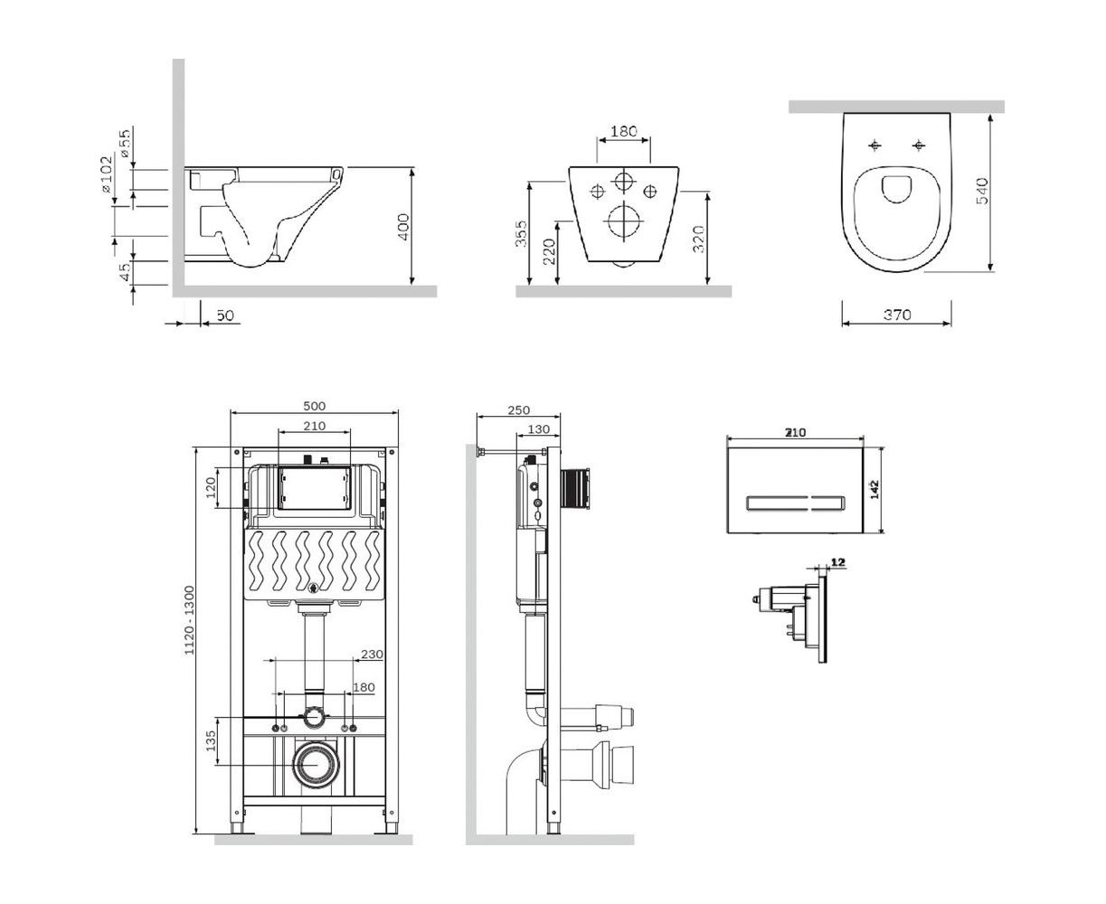 Габариты унитаза: