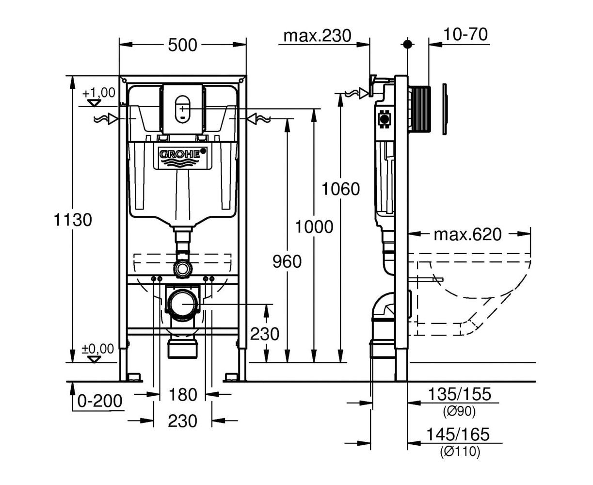 Система инсталляции для подвесного унитаза GROHE Rapid SL 4 в 1 в сборе, с кнопкой смыва Arena Cosmopolitan 38929000