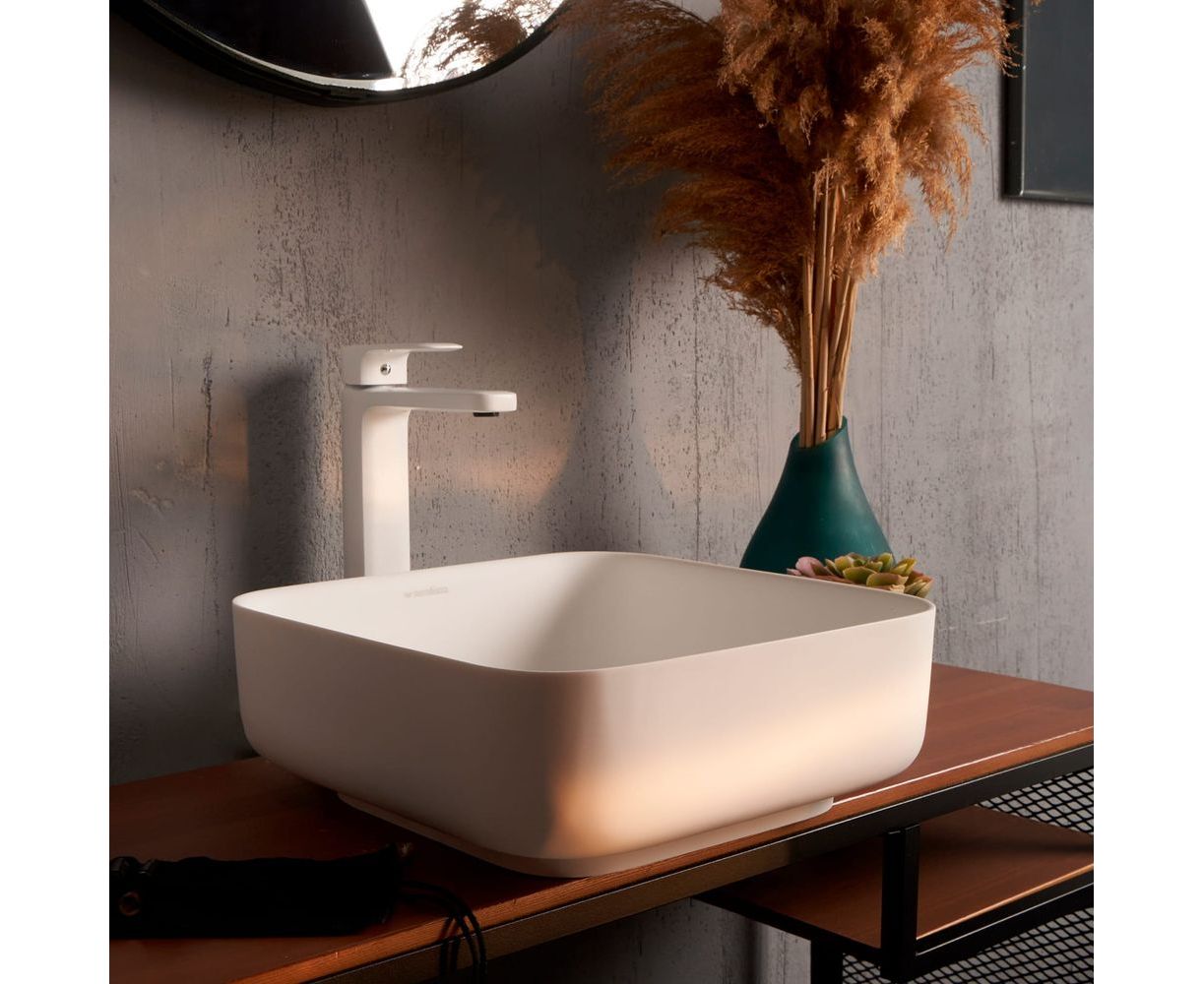 Раковина принимает температуру окружающей среды, поэтому она всегда будет приятна на ощупь. Уход за ней очень прост, достаточно протереть поверхность влажной губкой с чистящим средством.