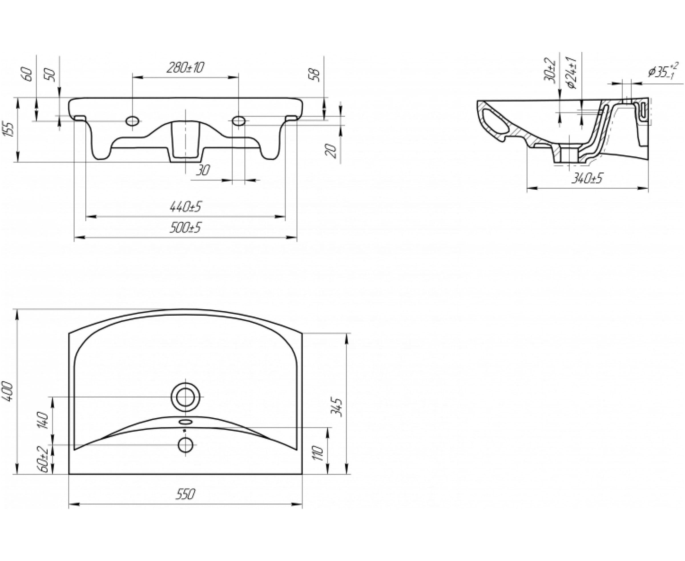 Умывальник Cersanit с 1 отверстием CARINA 55 UM-CAR55/1