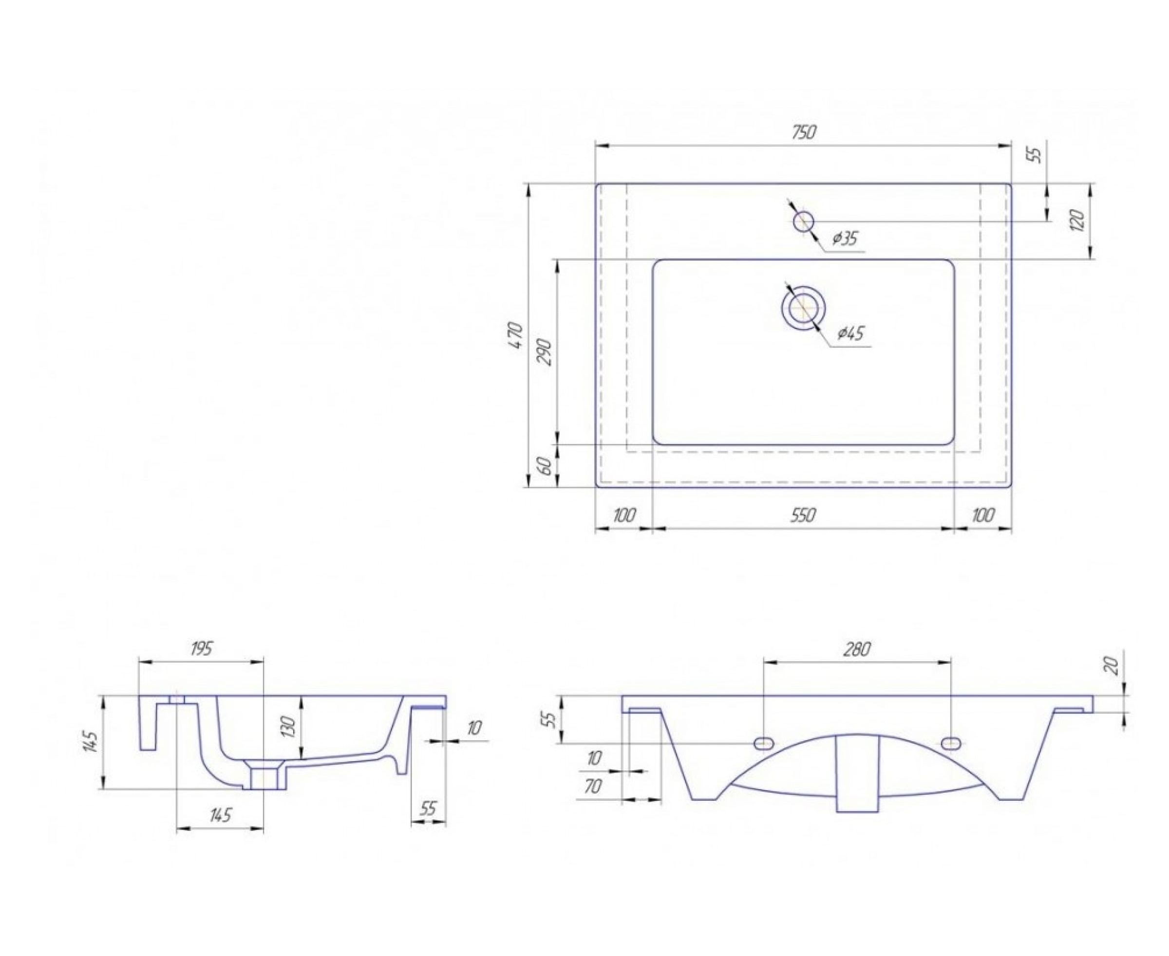 Умывальник Kirovit Оскар 750 белый мебельный 18297