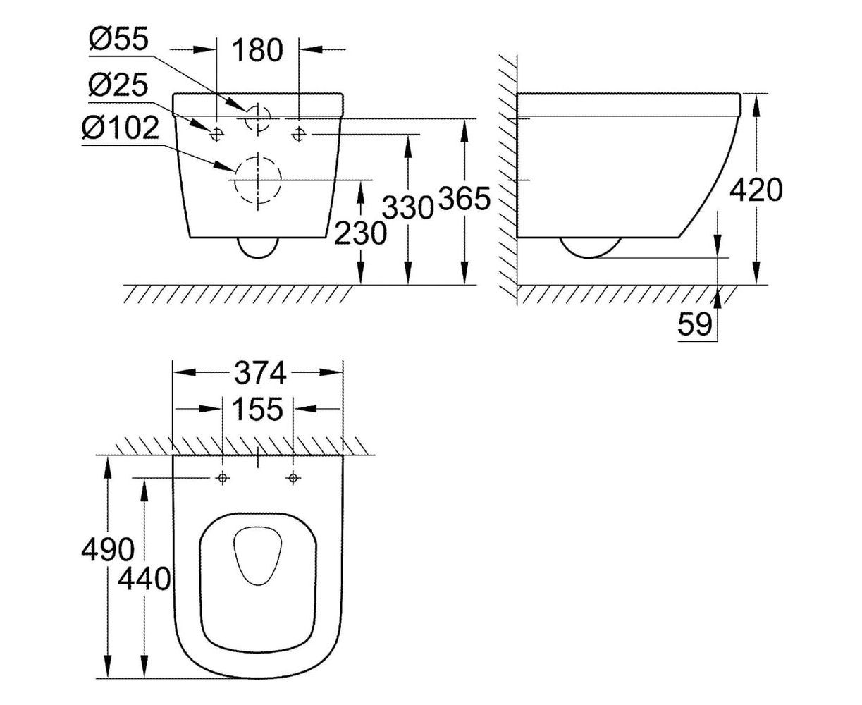 Подвесной компактный унитаз Grohe Euro Ceramic 39206000