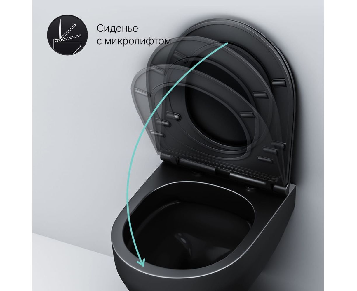 Подвесной унитаз AM.PM Spirit V2.0 FlashClean с сиденьем микролифт, черный матовый C701700MBSC