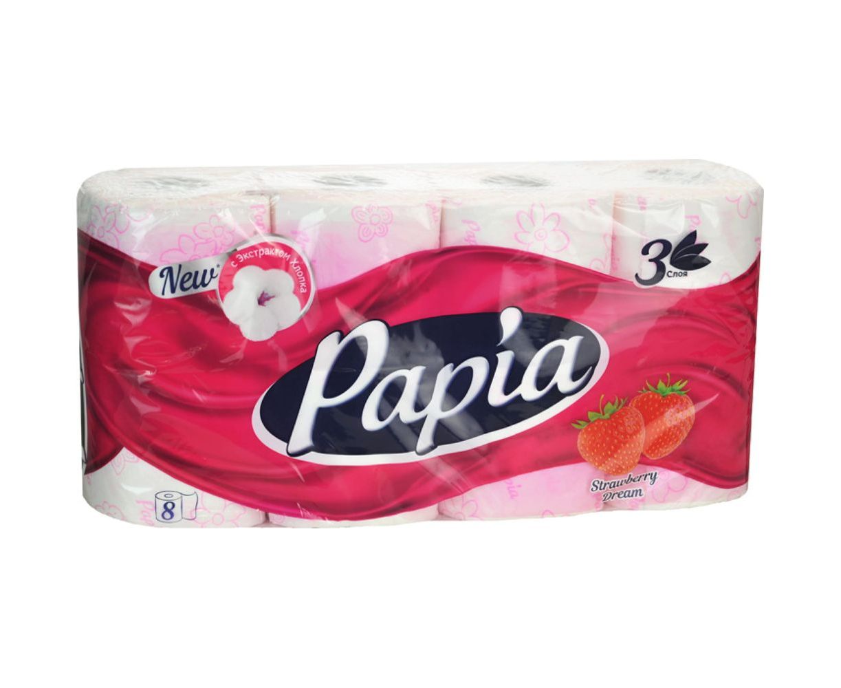 Туалетная бумага PAPIA Клубничная Мечта 3 слоя, 8 рулона 1015031433