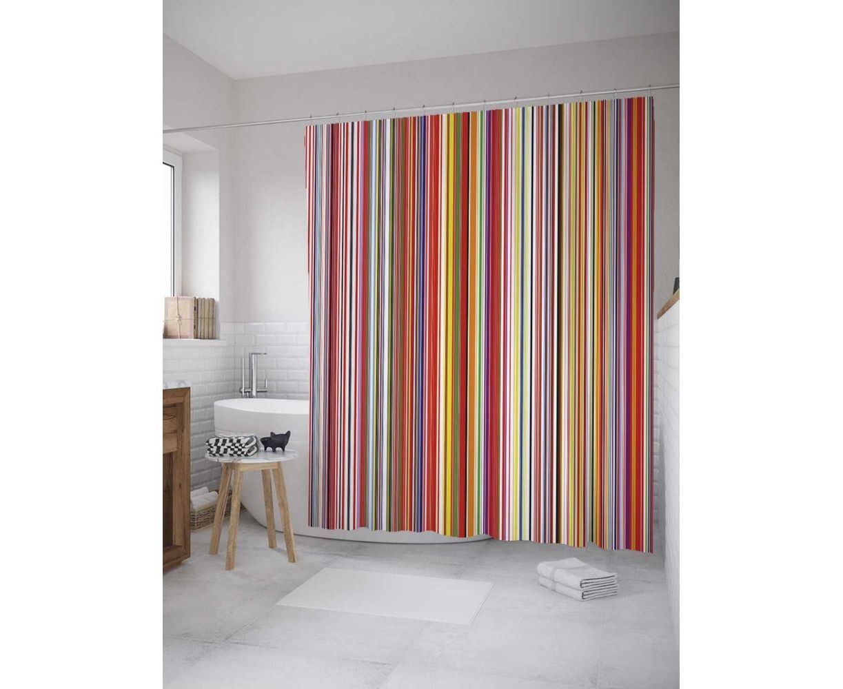 Штора (занавеска) для ванной JoyArty ""Цветные полосы"" из сатена, 180х200 см с крючками, sc_34034