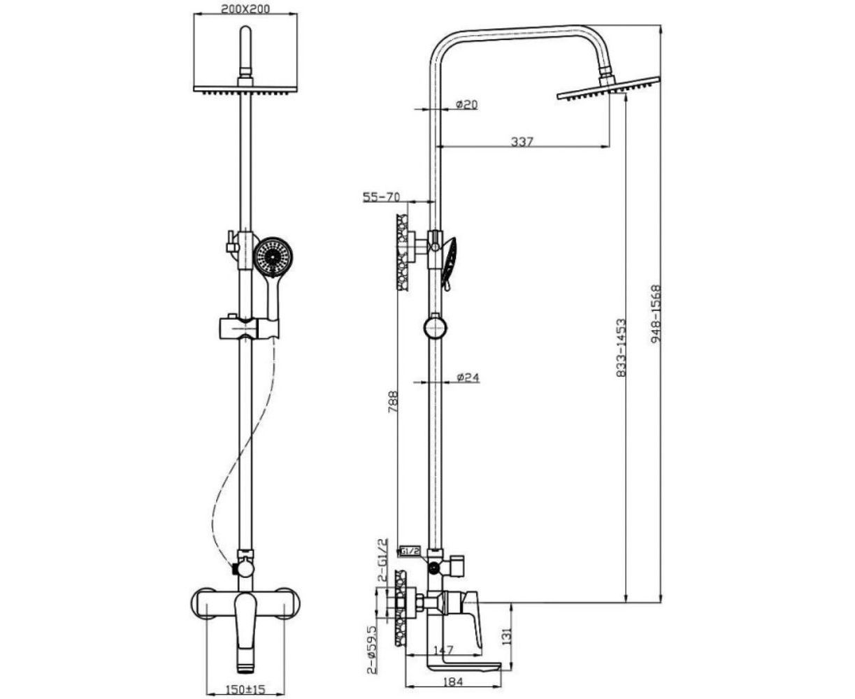 Душевая система Agger Brilliant со смесителем для ванныxдуша A0393300
