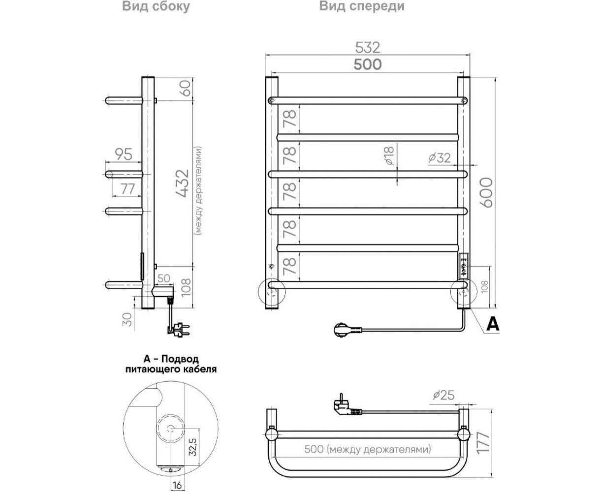Полотенцесушитель электрический INDIGO Europe Lux в размере 600х500 (ВхШ) выбирают за его технологичность и универсальность. Модель оснащена терморегулятором нагрева, у которого три режима: 40, 45, 50 градусов и таймером на отключение через 2, 4, 6 часов. Универсальность изделия предусматривает подключение через прямой провод, который переставляется на нужную вам сторону или скрытое подключение без покупки дополнительного переходника. Длина провода 1,2 метра. Полотенцесушитель относится к энергоэффективным изделиям, потребляемая мощность в данном размере 65 Вт. Специальная технология нагревательного кабеля защищает полотенцесушитель от перегрева что влияет на длительные сроки службы. В комплектации идут 4 телескопических держателя, комплект для монтажа и гарантийный паспорт. Полотенцесушитель INDIGO Europe Lux застрахован и имеет гарантию 3 года. Выбирая INDIGO вы получаете надежный продукт из нержавеющей стали с гарантией качества от Российского производителя.