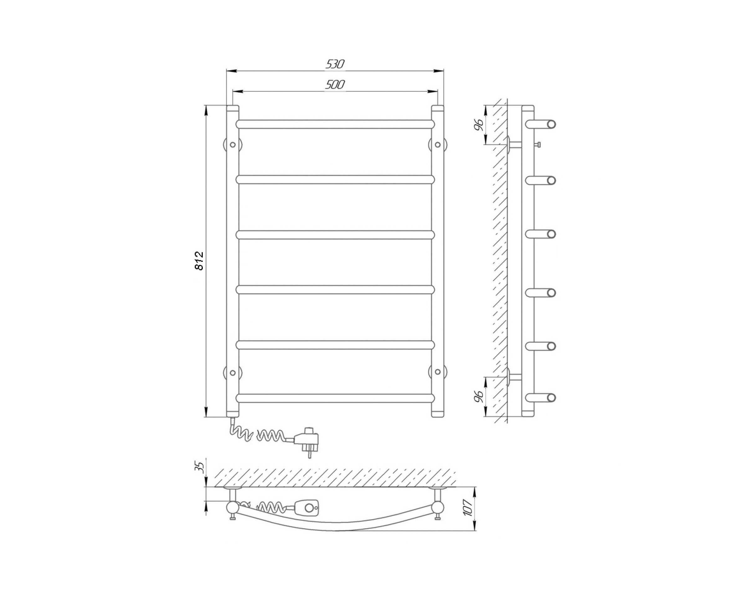 Полотенцесушитель Laris Классик П6 500/800 левый тэн 73207391