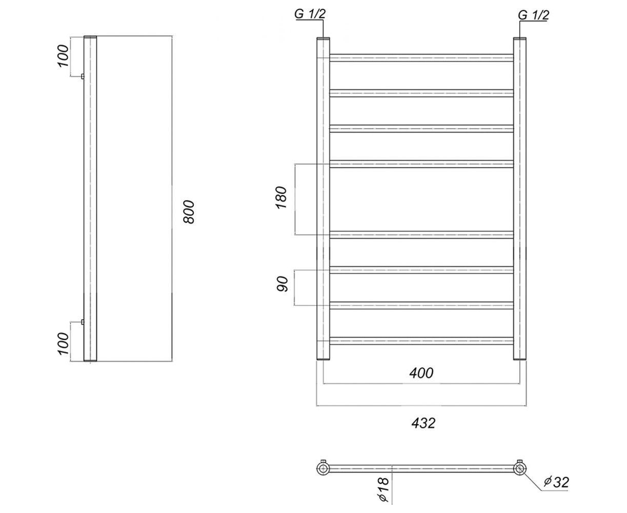 Domoterm Полотенцесушитель водяной Медея П8 400x800, xром