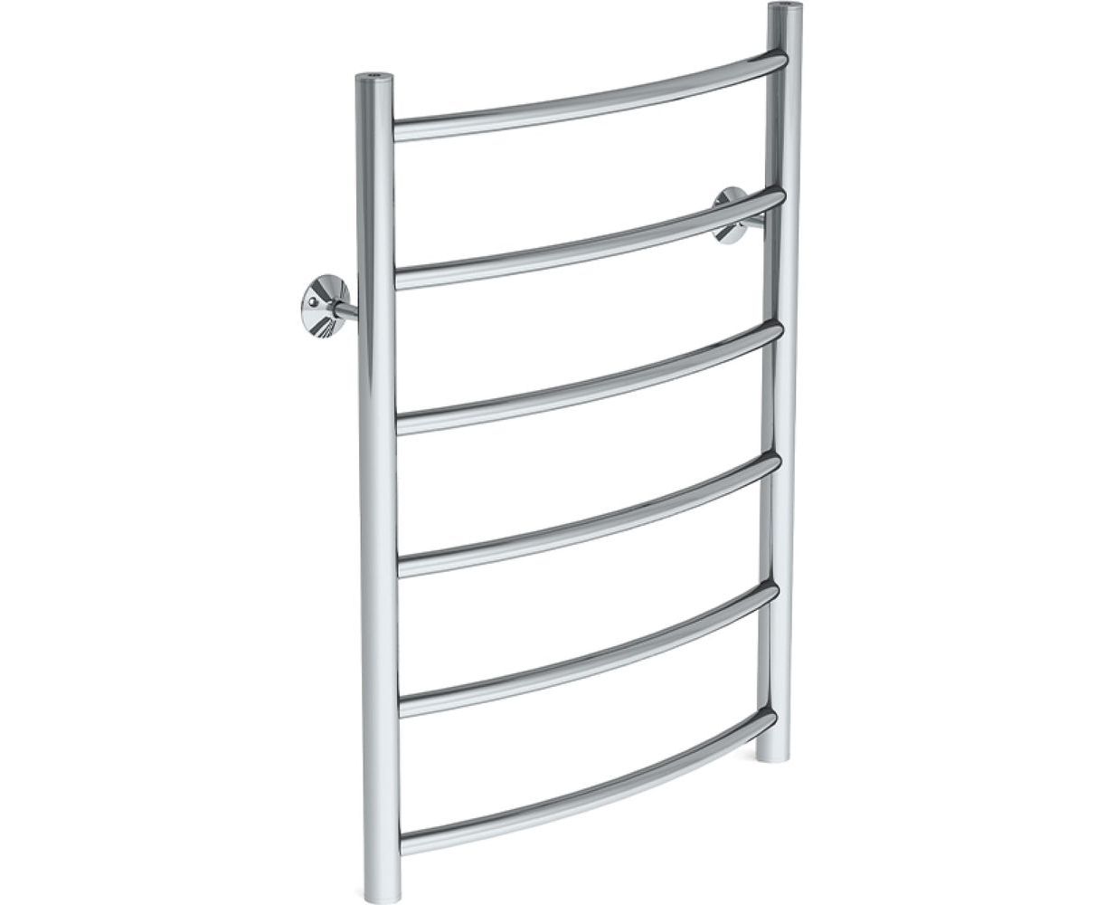Водяной полотенцесушитель Raduga Л 50х70 Д6 имеет классическую конструкцию в виде лесенки, изготовлен из нержавеющей стали.