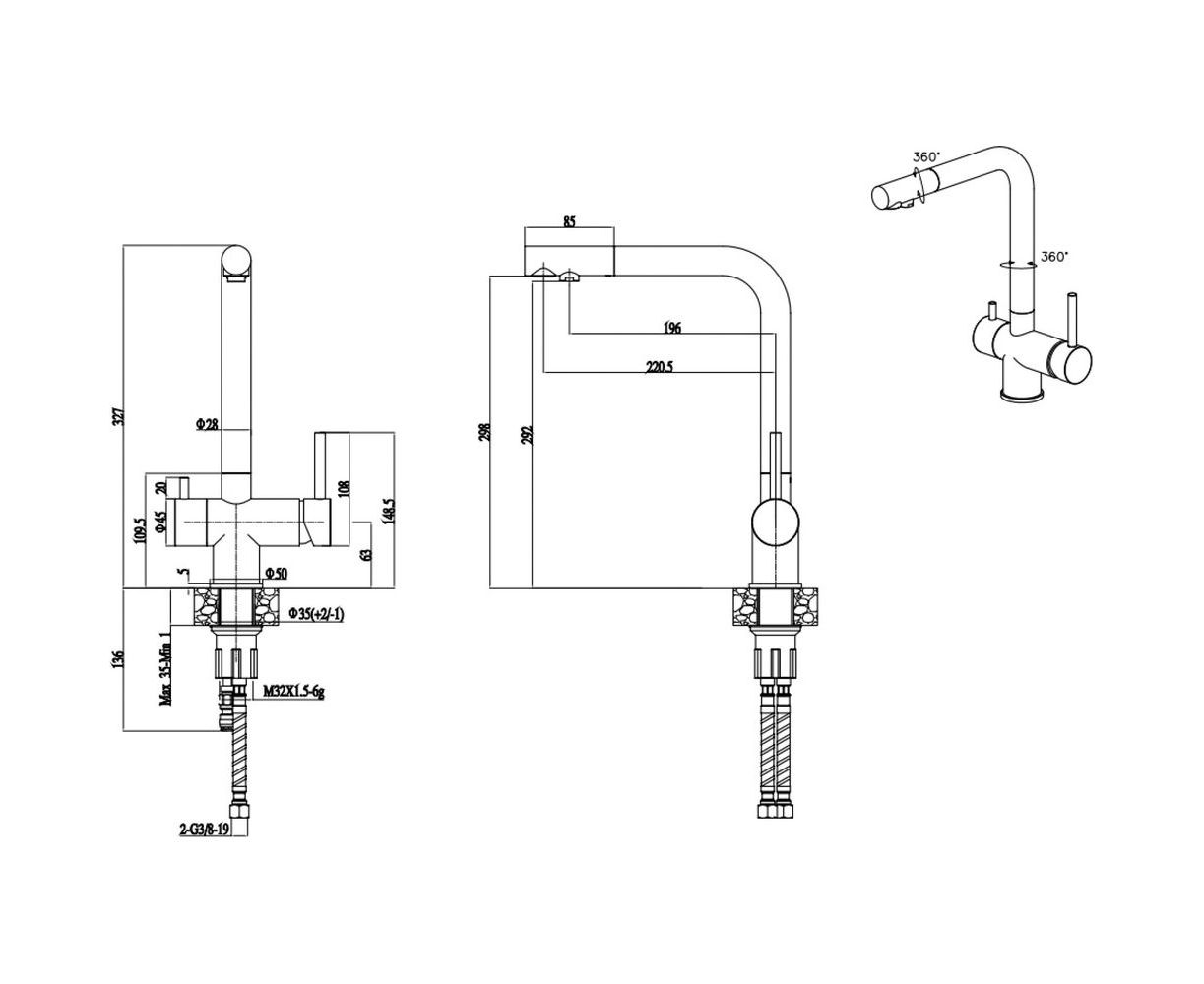 Paulmark Смеситель для кухни SKALEN под фильтр серый Sk213020-310