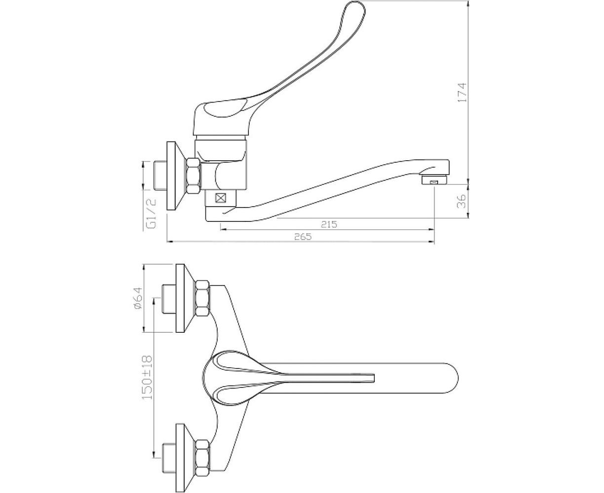 Смеситель для кухни ARGO SPECIAL настенный, хирургический , d-40 34186