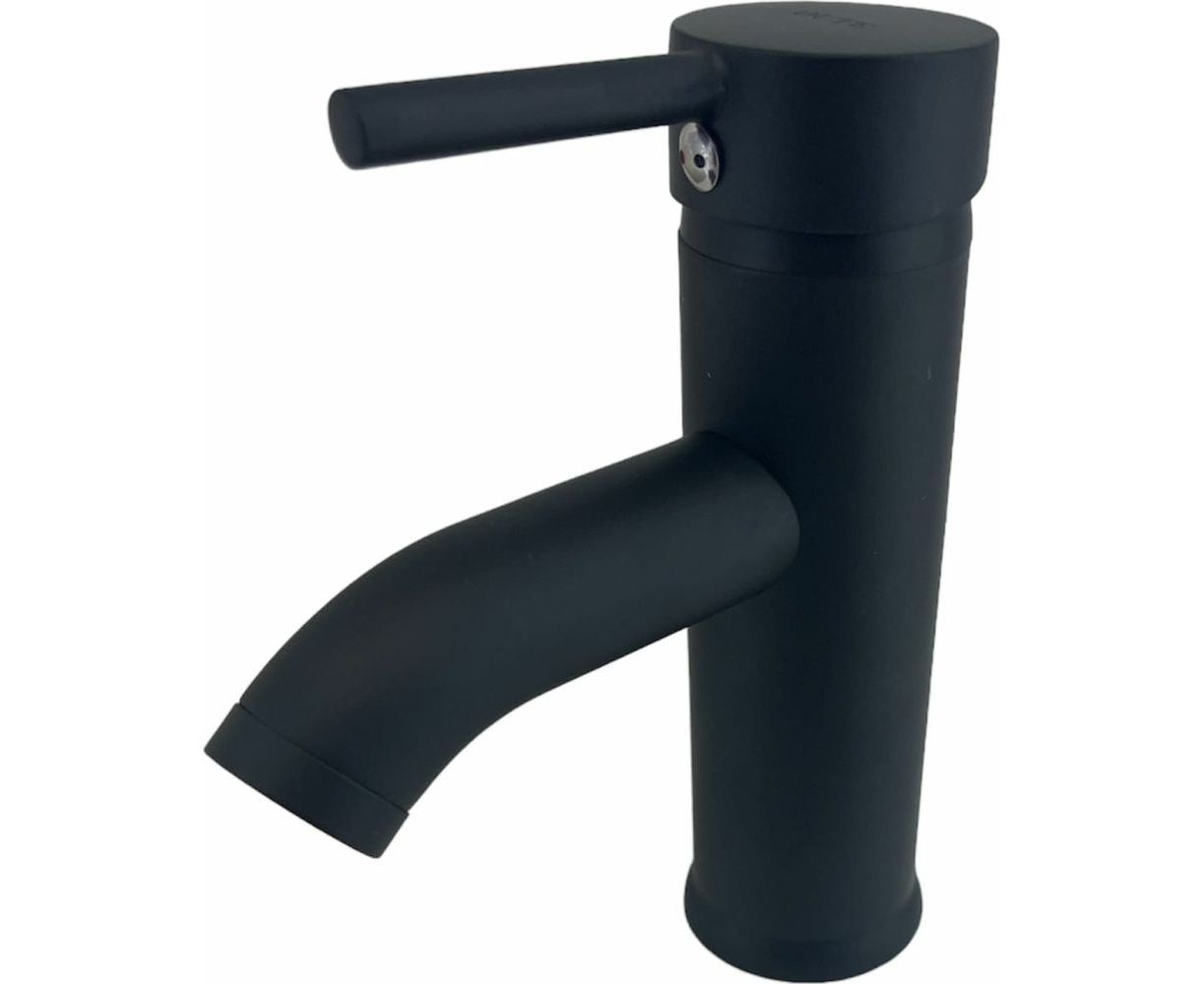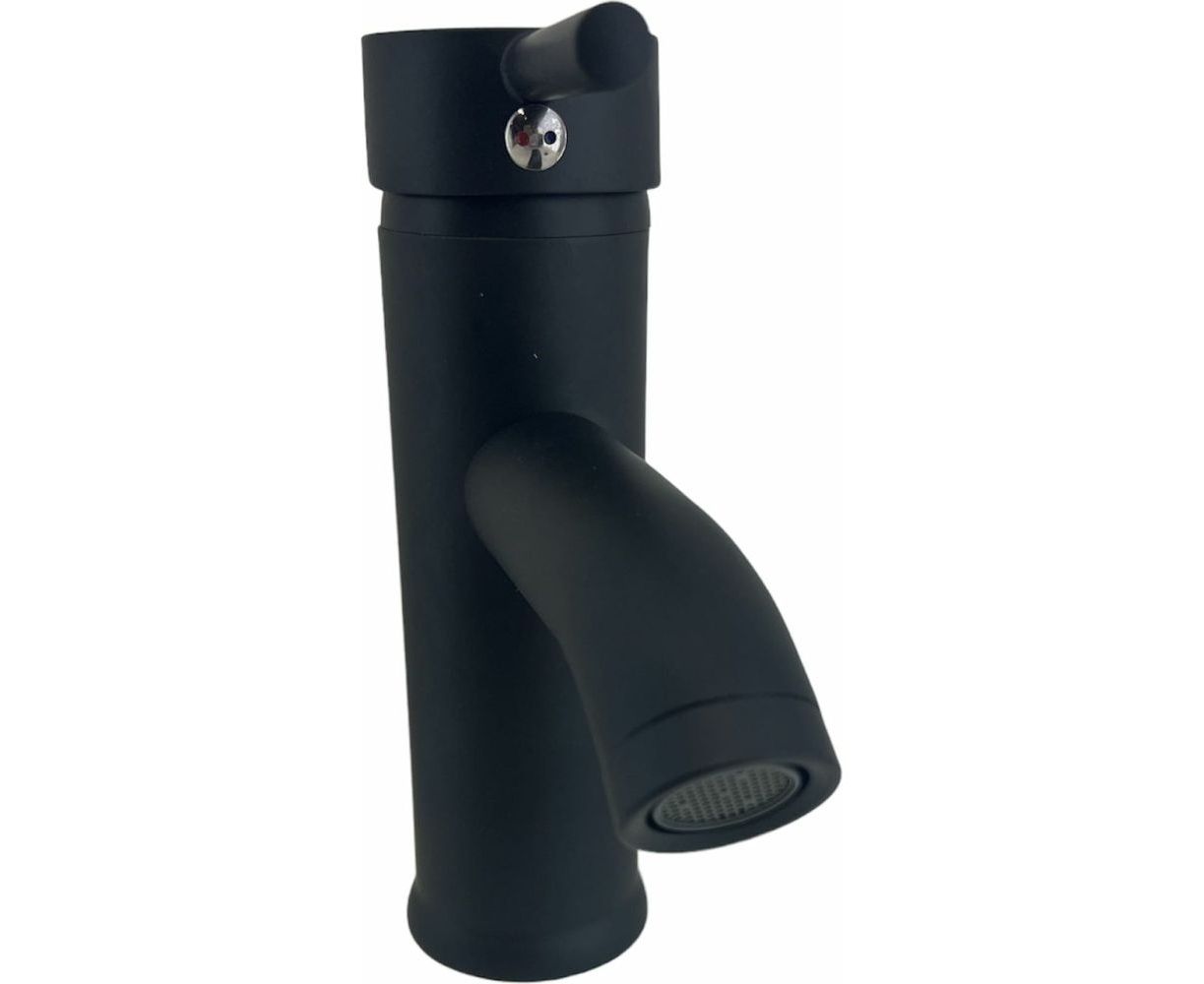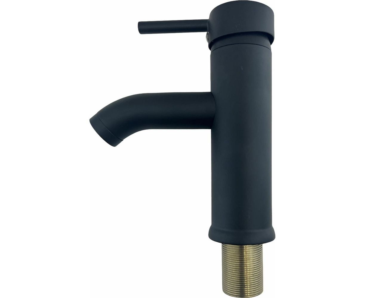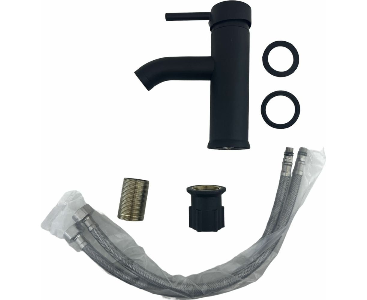 Смеситель для раковины OUTE черный матовый, однорычажное управление, фиксированный излив. Монтаж на одно отверстие, на гайке. Гибкая подводка T721H