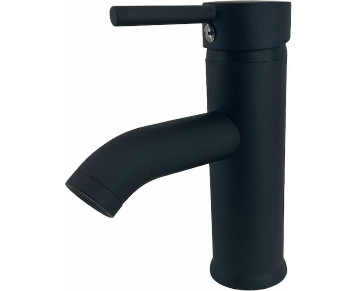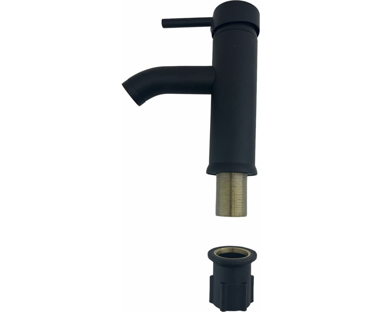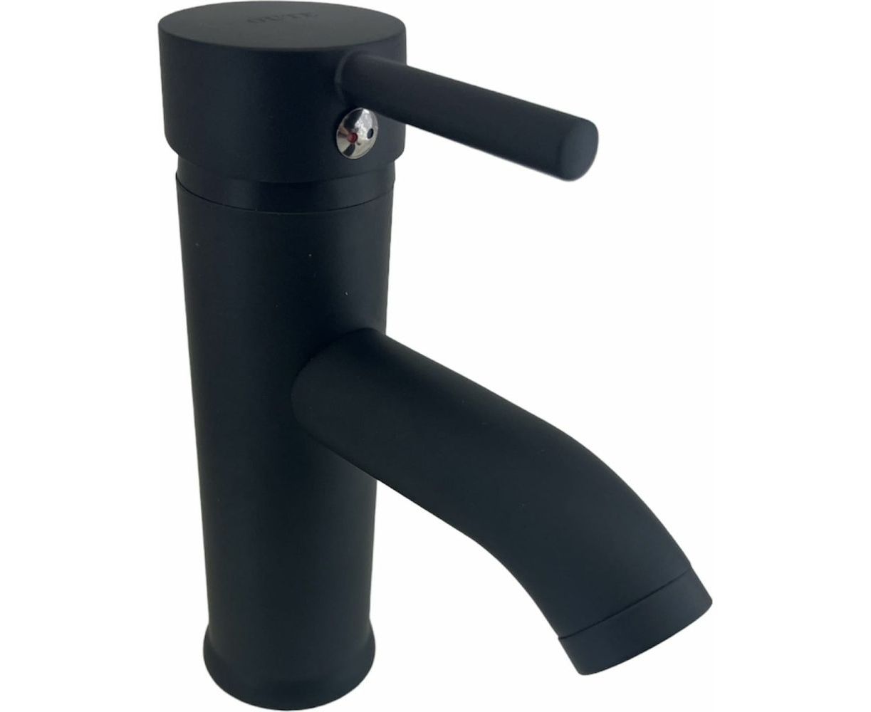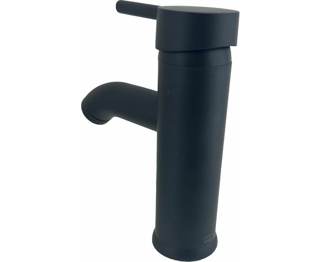Смеситель для раковины OUTE черный матовый, однорычажное управление, фиксированный излив. Монтаж на одно отверстие, на гайке. Гибкая подводка T721H