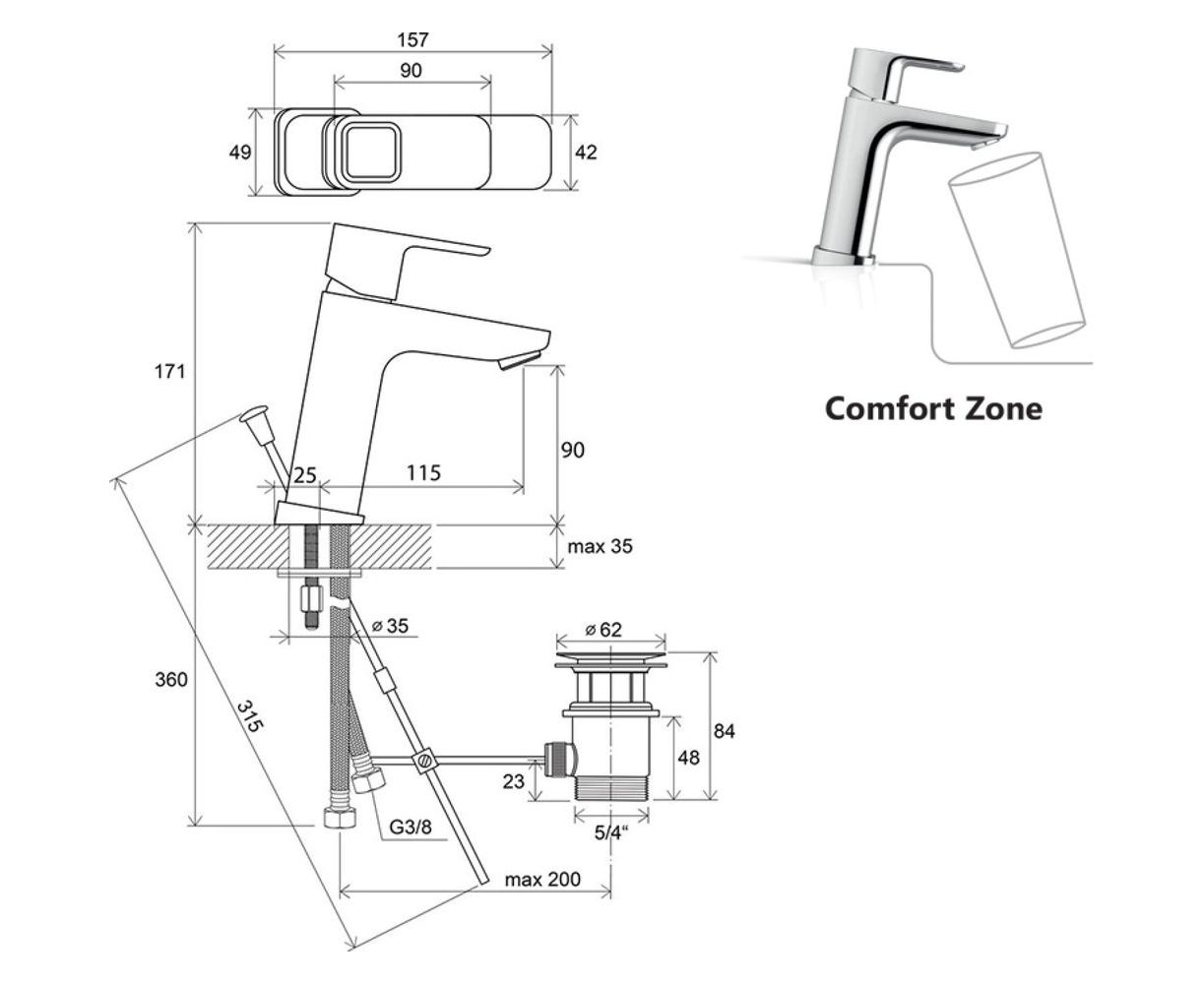 Смеситель для умывальника RAVAK с донным клапаном, 170 мм TD 013.00 X070061 00000040935