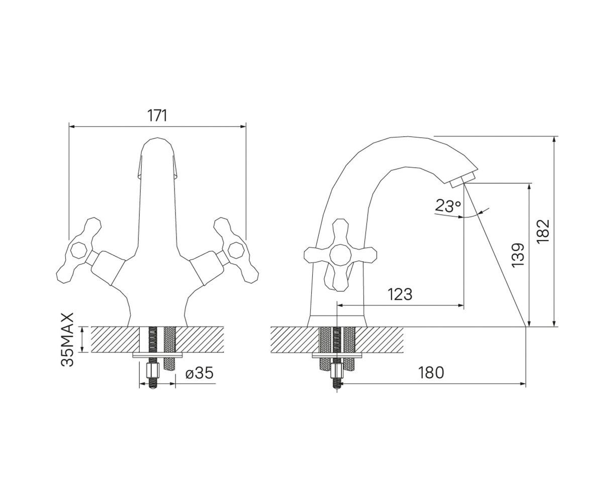 - Размеры смесителя (ДхШхВ): 171x163x182 мм;