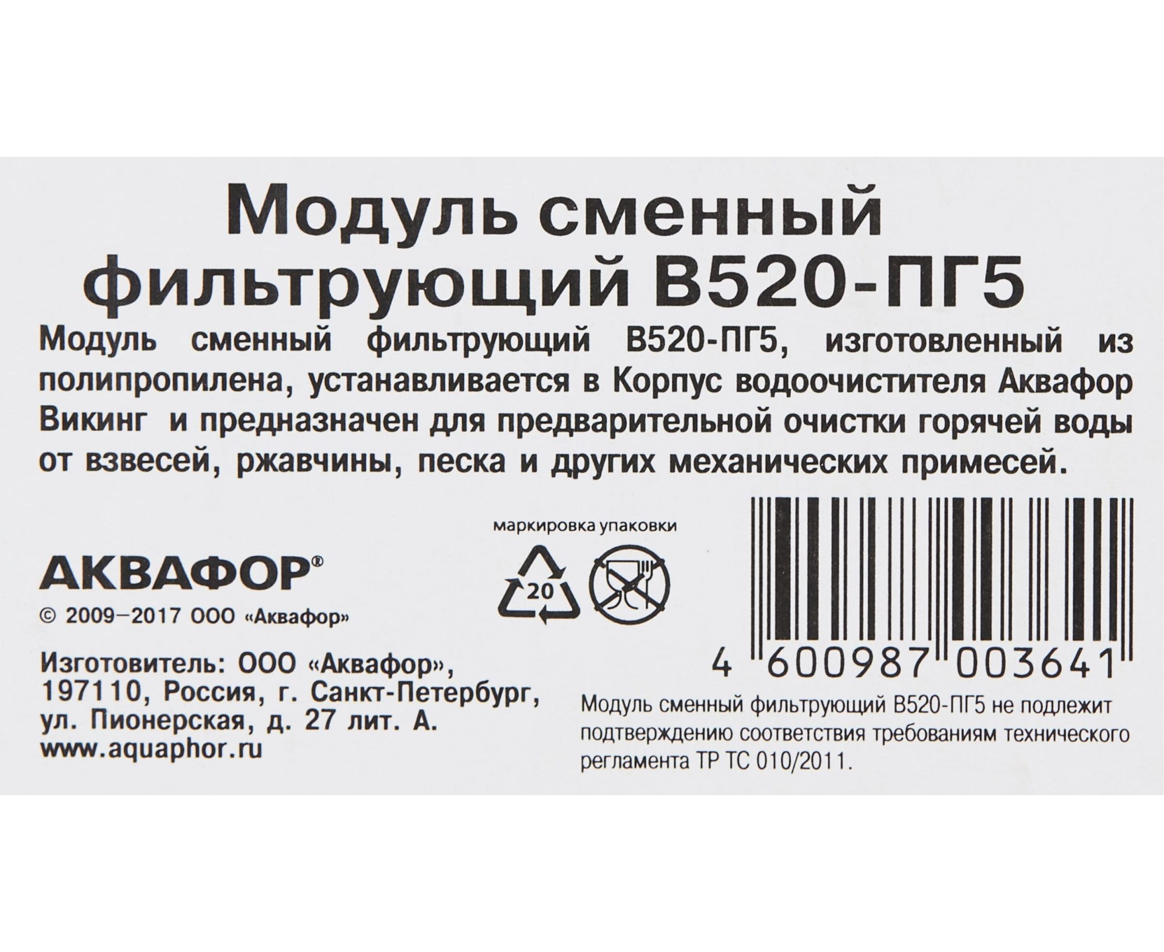Модуль сменный фильтрующий Аквафор В520-ПГ5