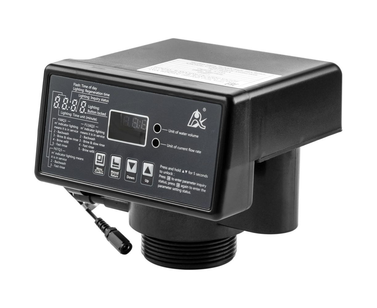Блок Runxin f116q3 для умягчения по расходу 1" 36560 предназначен для управления процессом фильтрации, регенерации, обратной промывки фильтрующей загрузки и другими режимами работы умягчителя колонного типа, использующего для регенерации реагенты.