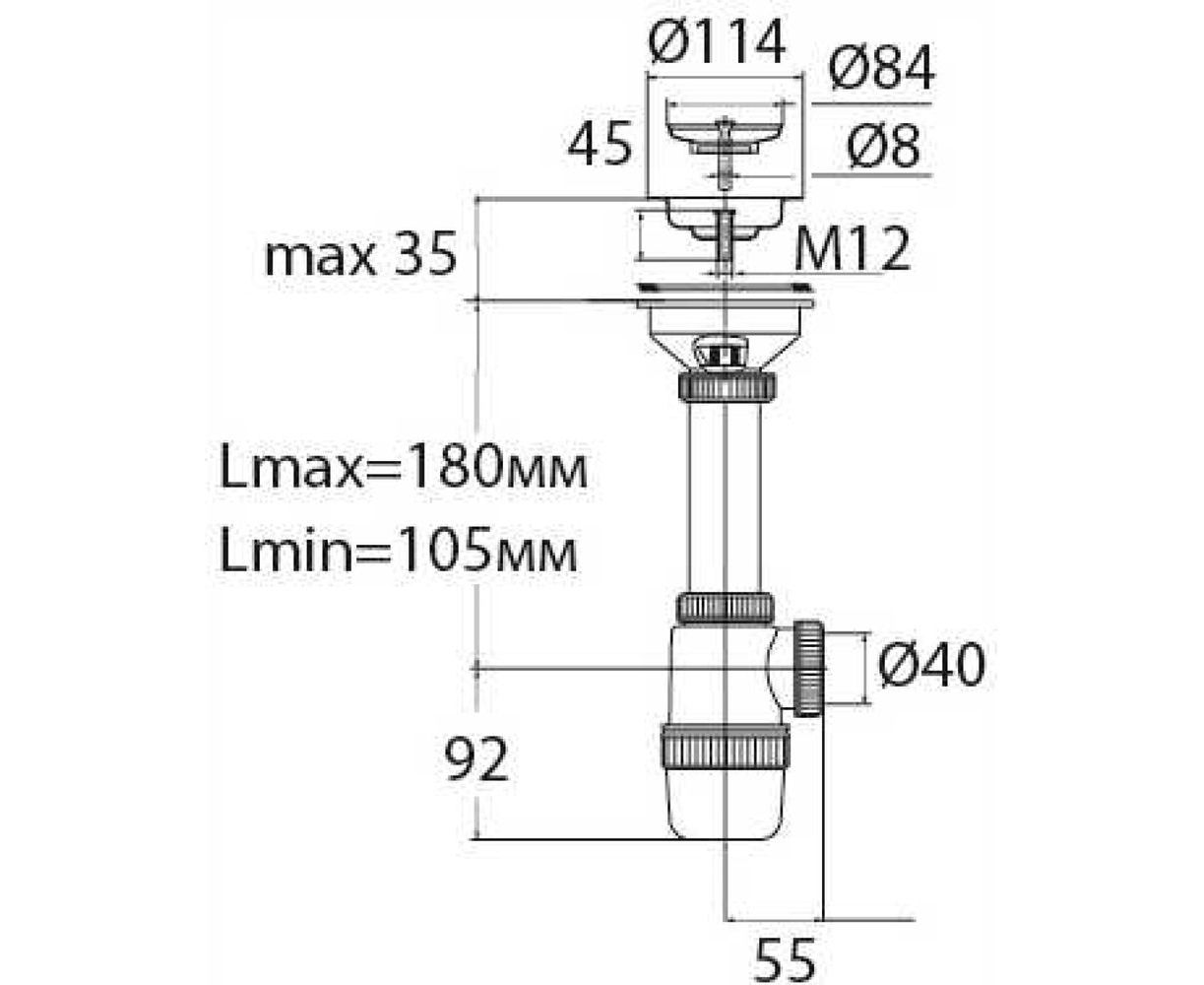 - Регулировка сифона по высоте от 105 до 180 мм.