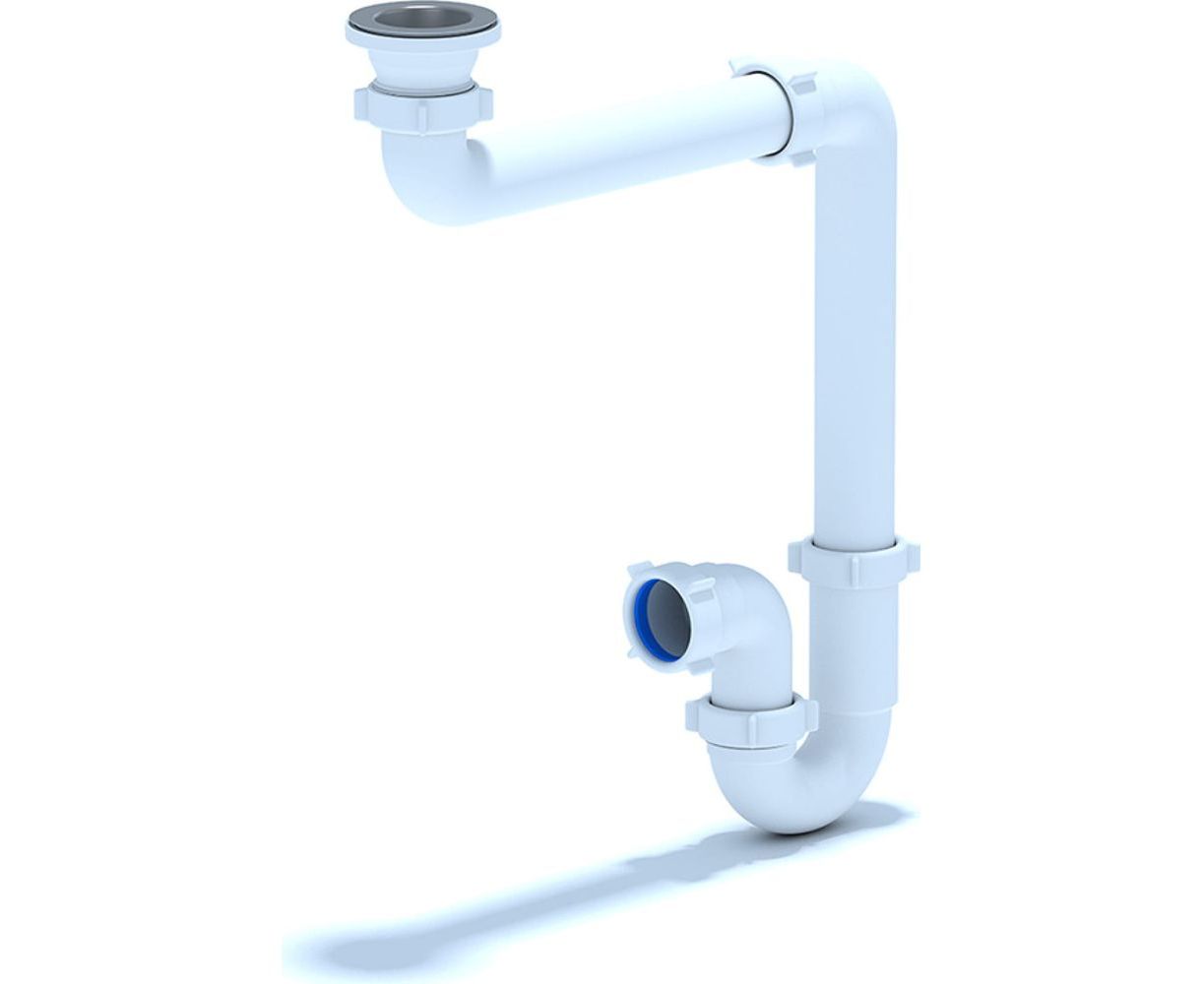 Сифон для кухонной мойки АНИ пласт 1 1/2"х40 D5000 с диаметром сливного отверстия 50-60 мм. Смещенный сифон предназначен для более эффективного использования пространства под кухонной мойкой или под умывальником в ванной комнате. Если мойка установлена в тумбе или кухонном шкафу - можно использовать все полезное пространство, сифон не будет мешать что-то достать или положить. Благодаря своей форме прямоточный сифон имеет высокую скорость слива сточной воды, а так же самый простой способ прочистки без демонтажа.