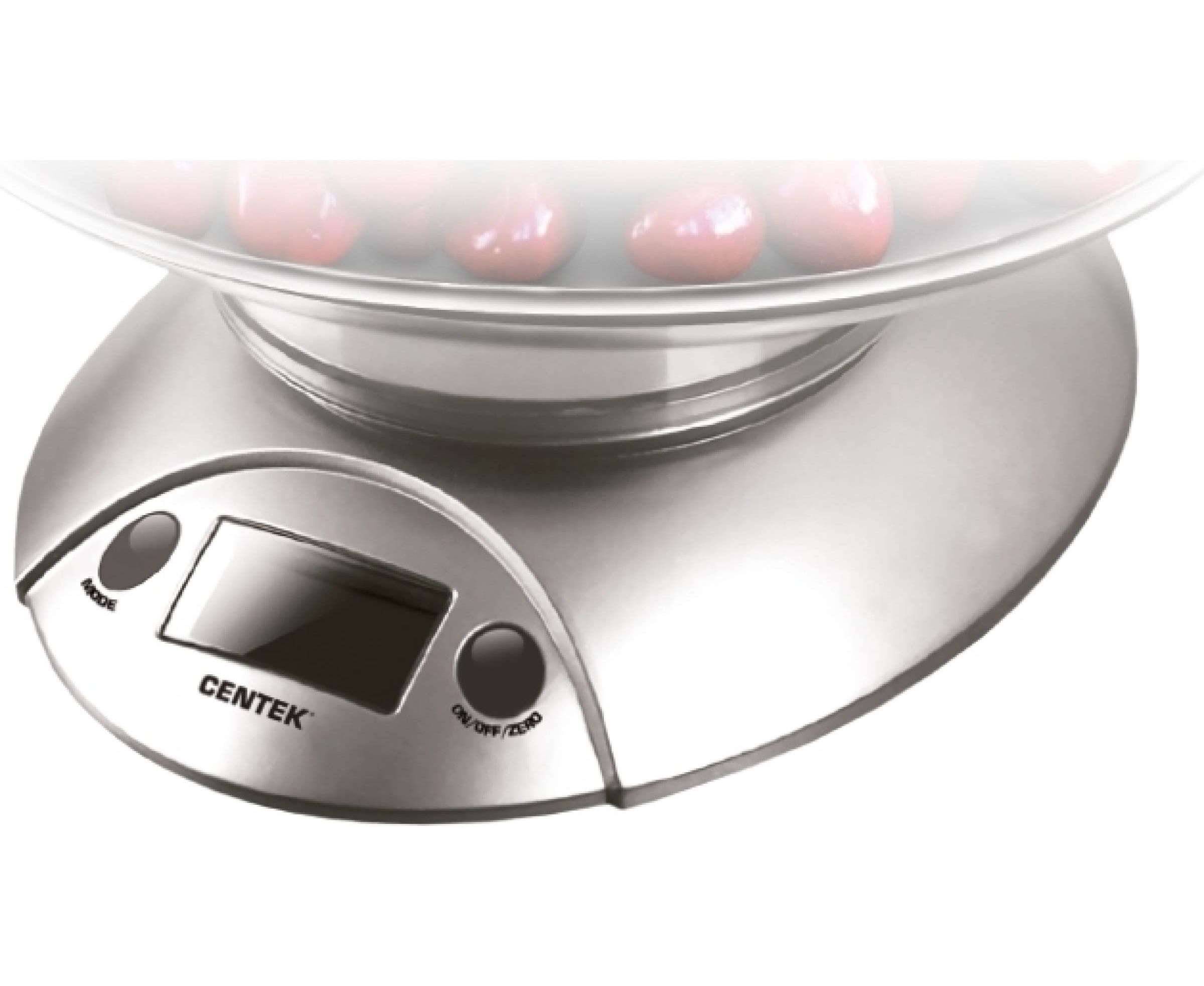 Кухонные весы Centek электронные, чаша, пластик, 5кг, шаг 1г, тарирование серебро/черный CT-2451