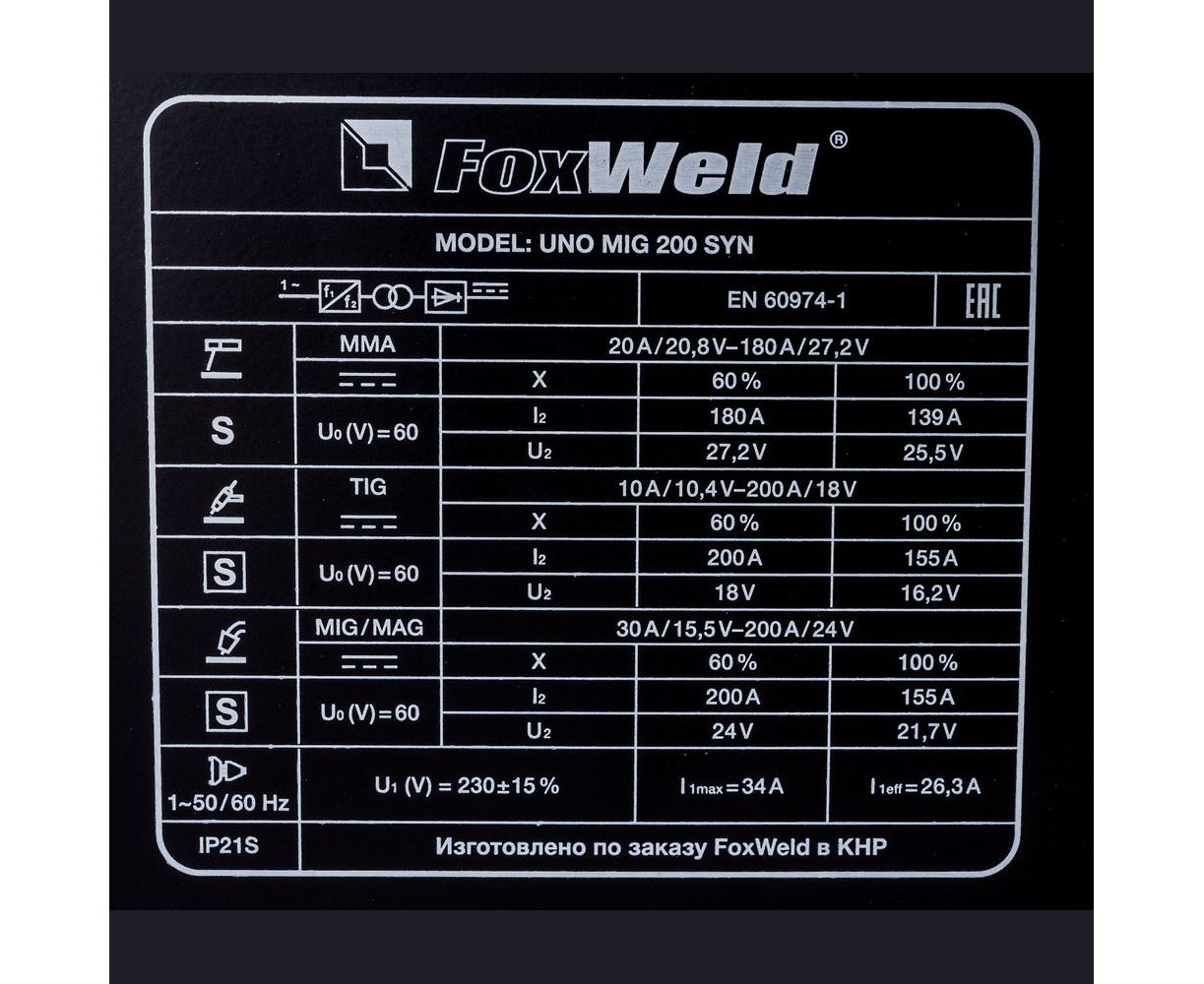 Сварочный полуавтомат Foxweld UNO MIG 200 SYN 7172