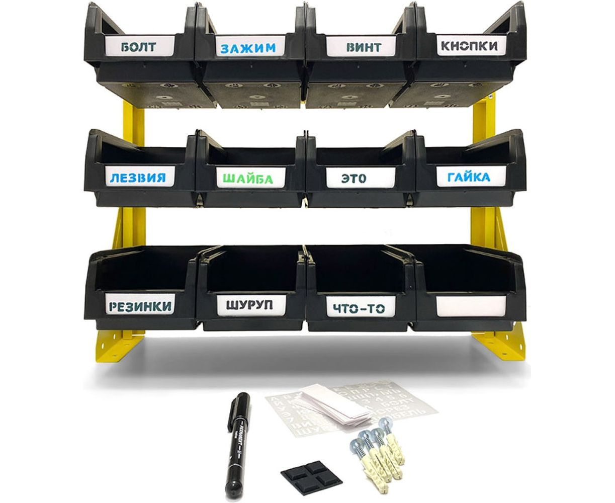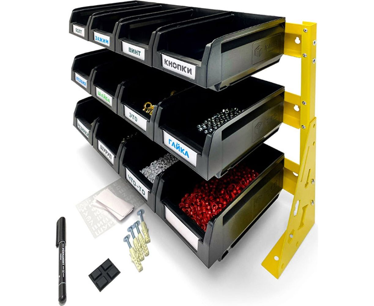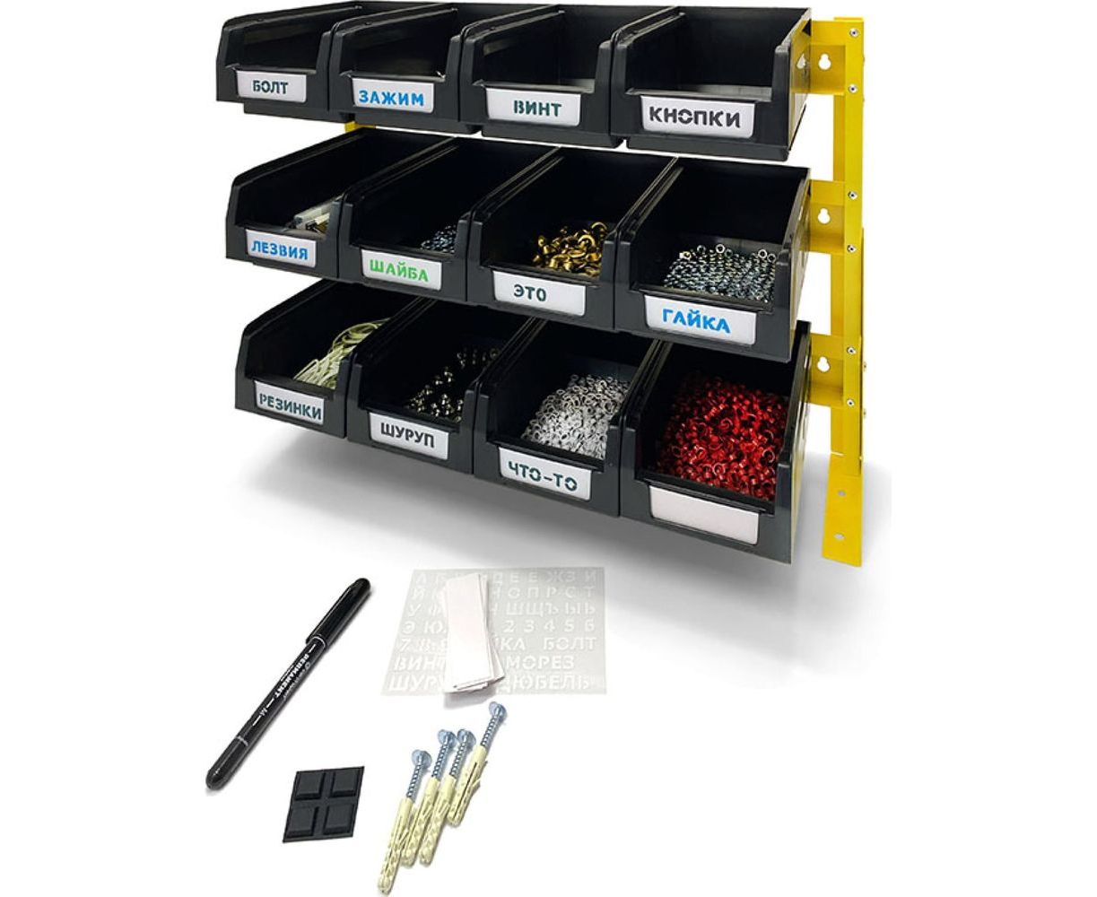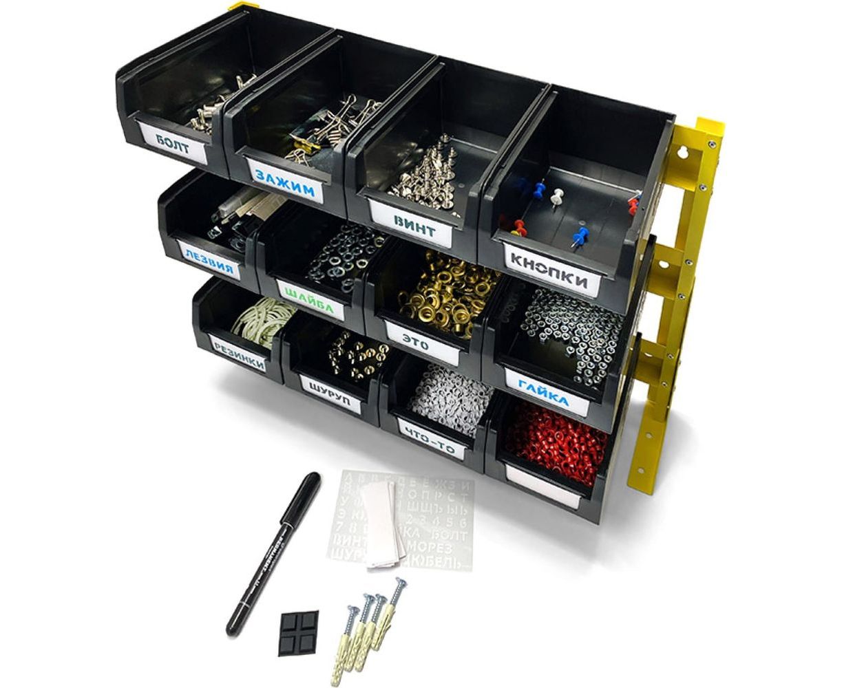 Органайзер для мелочей ООО ММПО 1-3x4 4673736779074 - это незаменимый помощник в организации рабочего пространства мастерской и сборочного цеха. Представляет собой односторонний органайзер для адресного хранения мелочей и крепежа. Рассчитан на 12 мест хранения в лотках размером 165х100х75 мм.