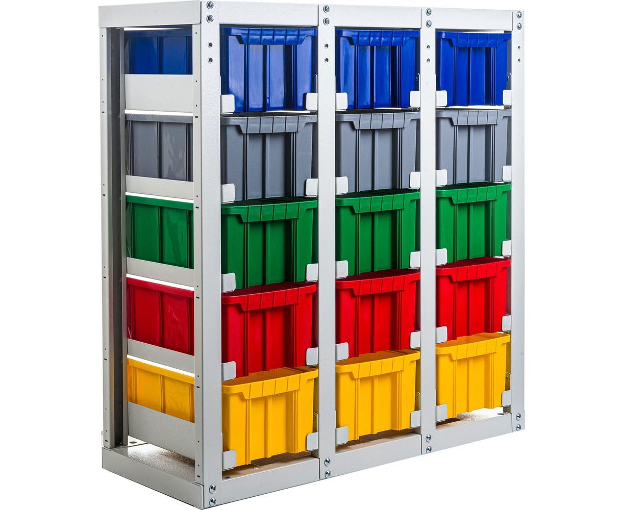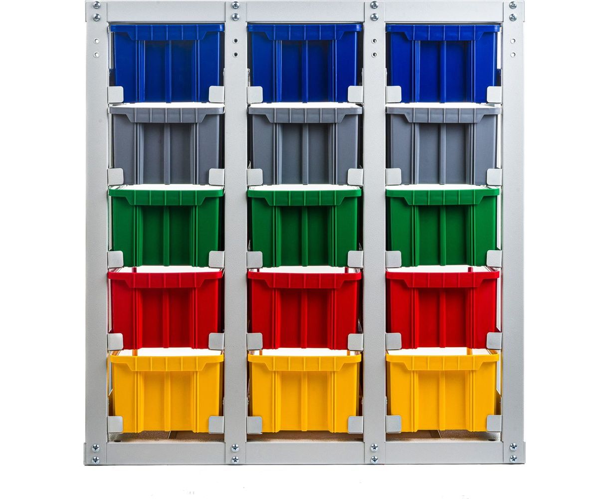 Стелла-техник Стеллаж с направляющими стационарный, односторонний, 15 ячеек с ящиками, V3-15