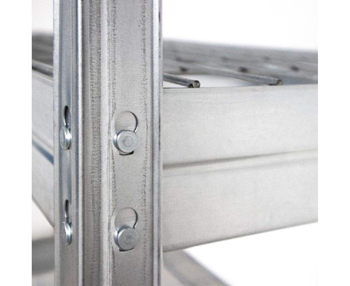 Выдерживает нагрузку до 300 кг на полку при равномерном распределении. Благодаря инновационной системе креплений Rivet собирается за 15-20 минут без болтов и без инструментов. Дополнительная прочность обеспечивается за счет усилительных элементов полок.