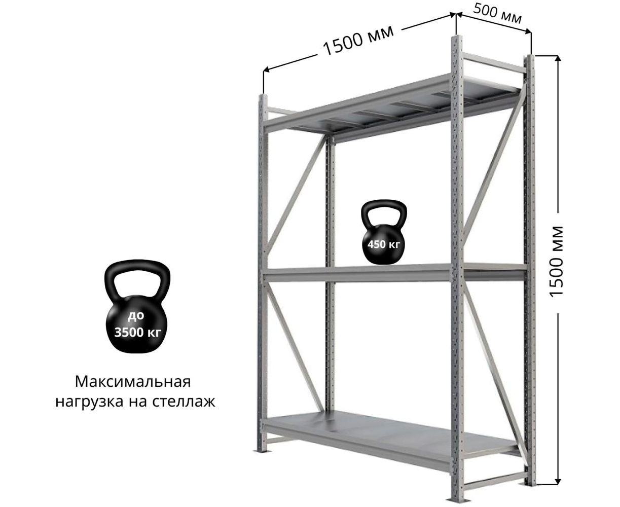 Металлический стеллаж IRONMEBEL optimus pro h-1500 zn, 3 яруса 1500x500 M-СГР1500ОЦ1500500ОЦ3
