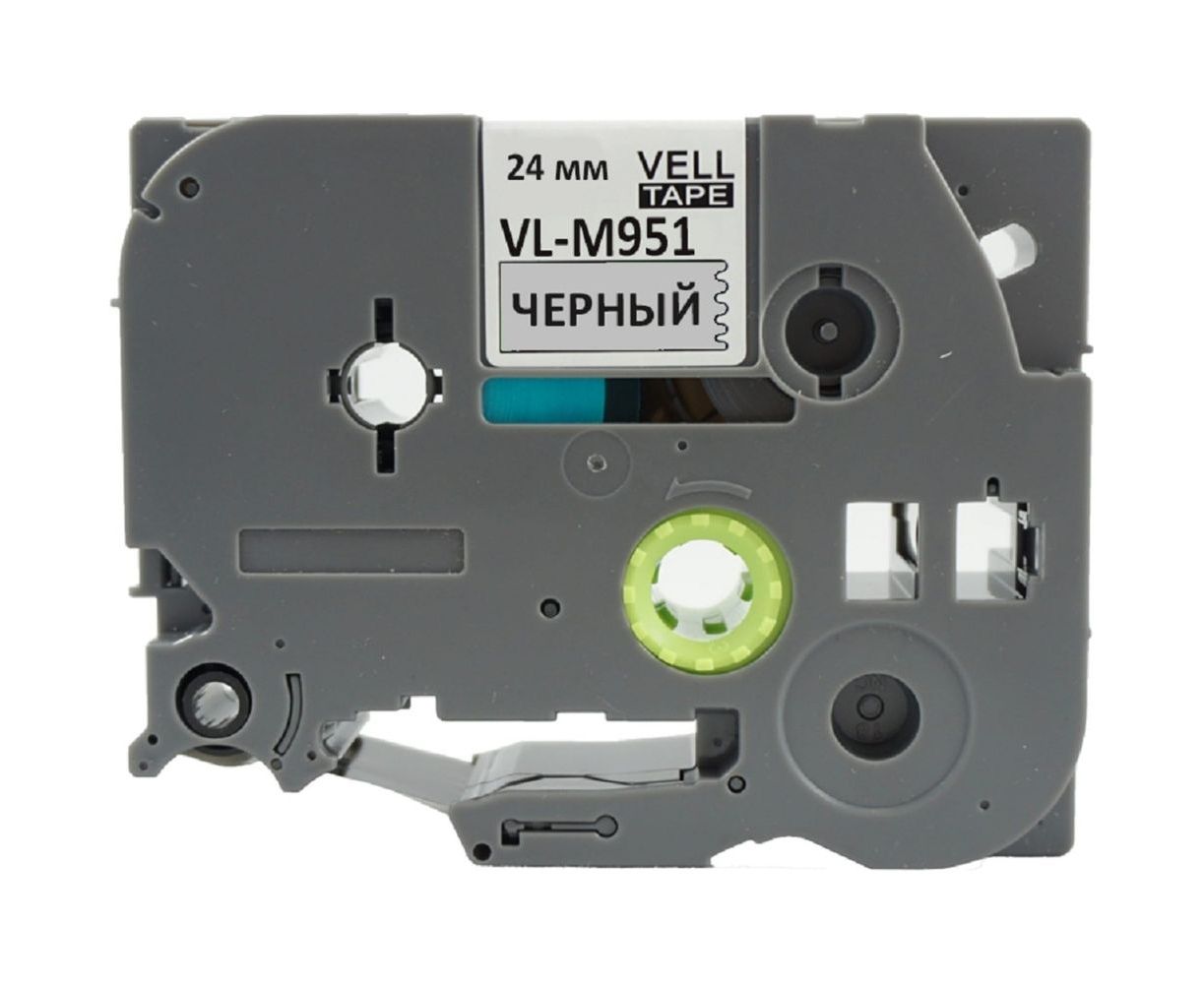 Лента Vell VL-M951 Brother TZE-M951, 24 мм, черный на металлизированном, для PT D600/2700/P700/P750 319980