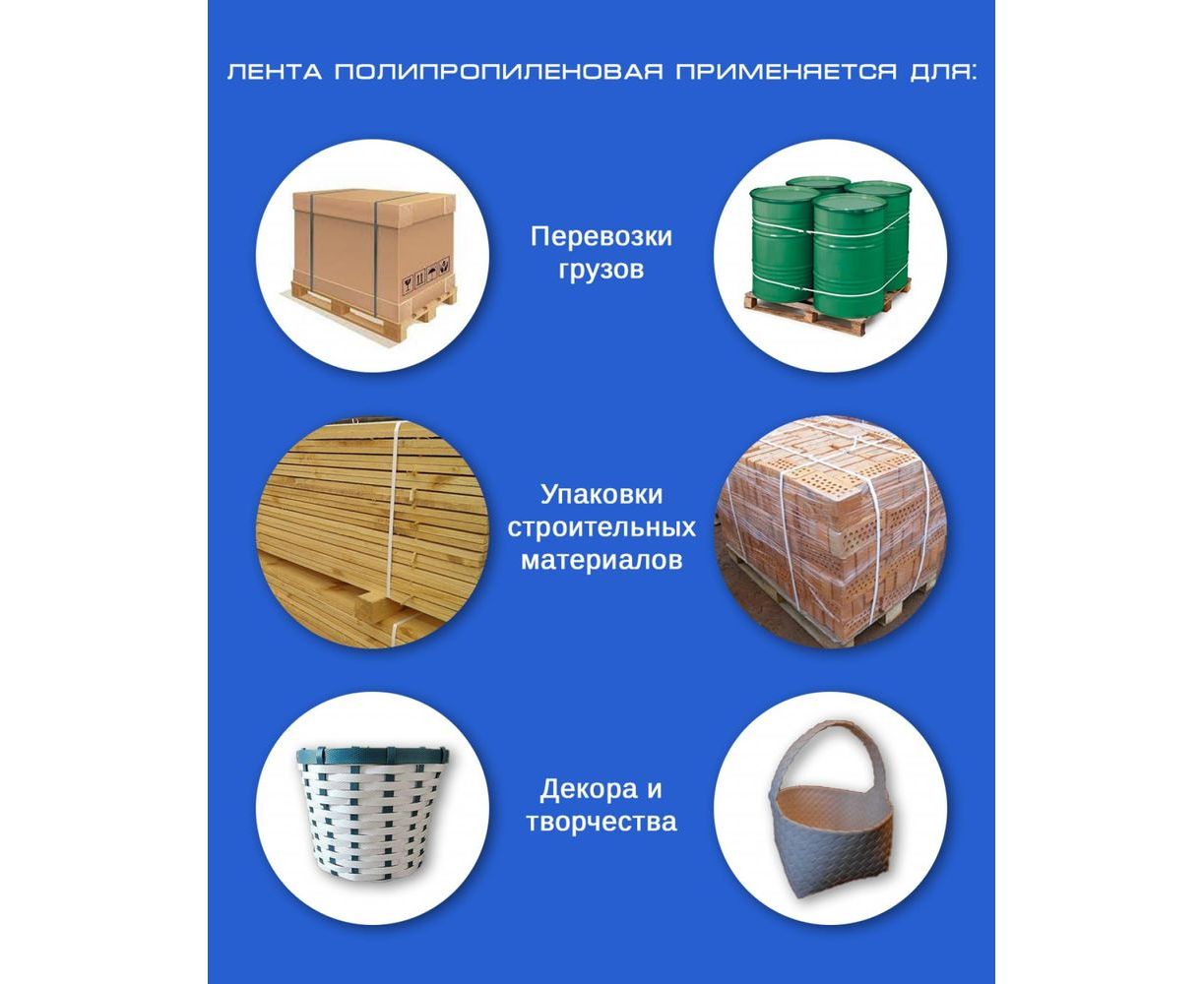 Лента способна растягиваться без уменьшения ширины. Первичная полипропиленовая стреп лента используется для плотного стягивания грузов, их перевозки и надежного хранения. Стреппинг лента применяется для перевозки крупной бытовой техники, стройматериалов (кафеля, кирпича и металлопроката), строительного профиля, труб, а также картона, бумаги в рулонах или кипах, мебели и досок.