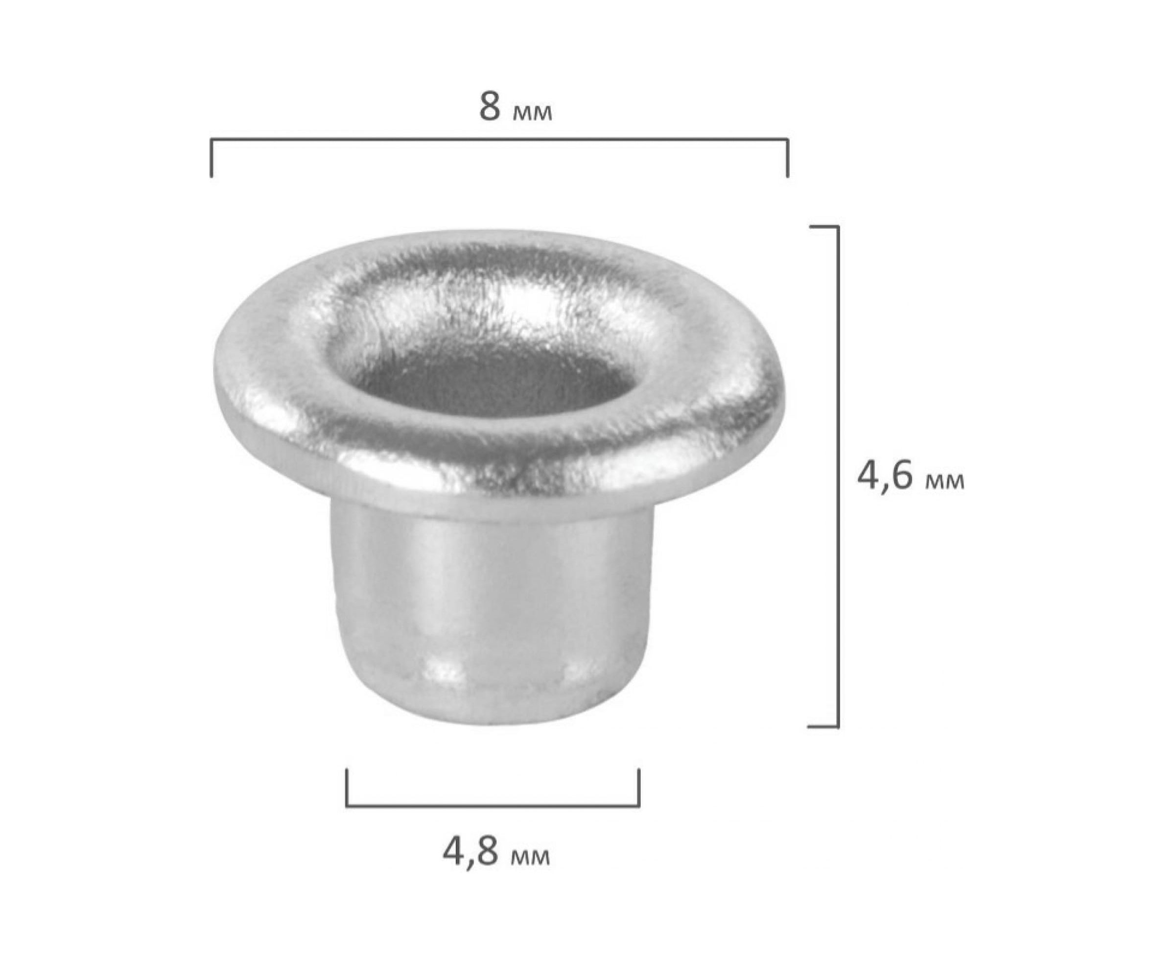 Изготовлены из металла серебристого цвета. Длина - 4.6 мм, внутренний диаметр 4.8 мм.