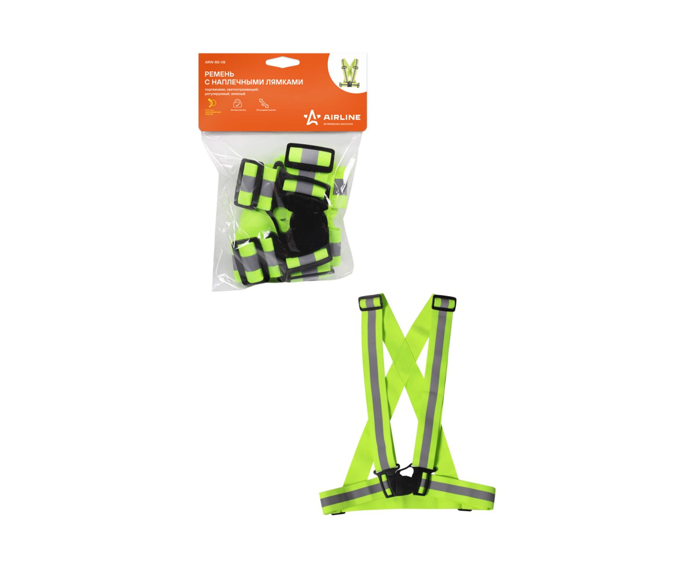 Светоотражающий ремень Airline с наплечными лямками подтяжками, регулируемый, зеленый ARW-BS-08