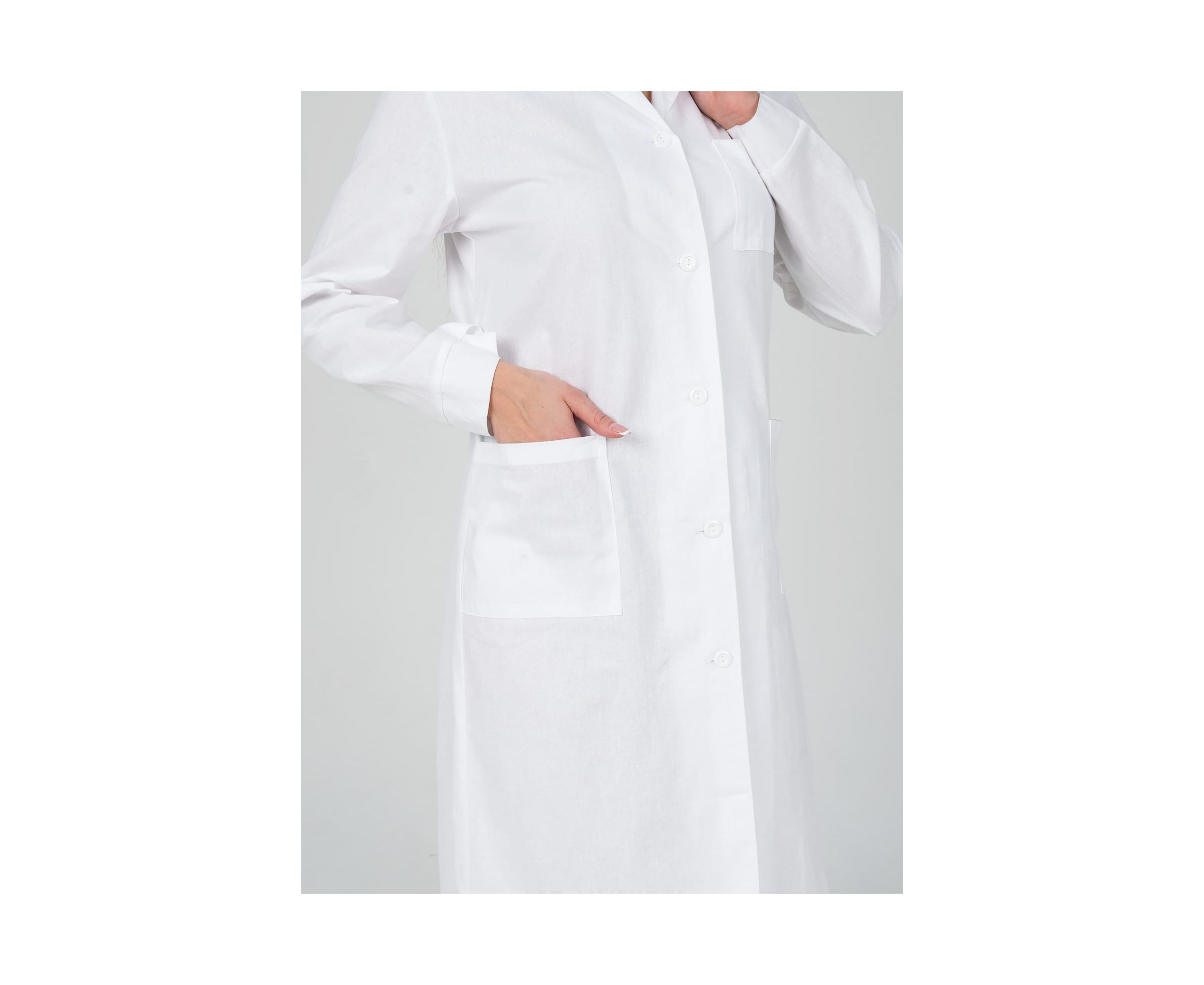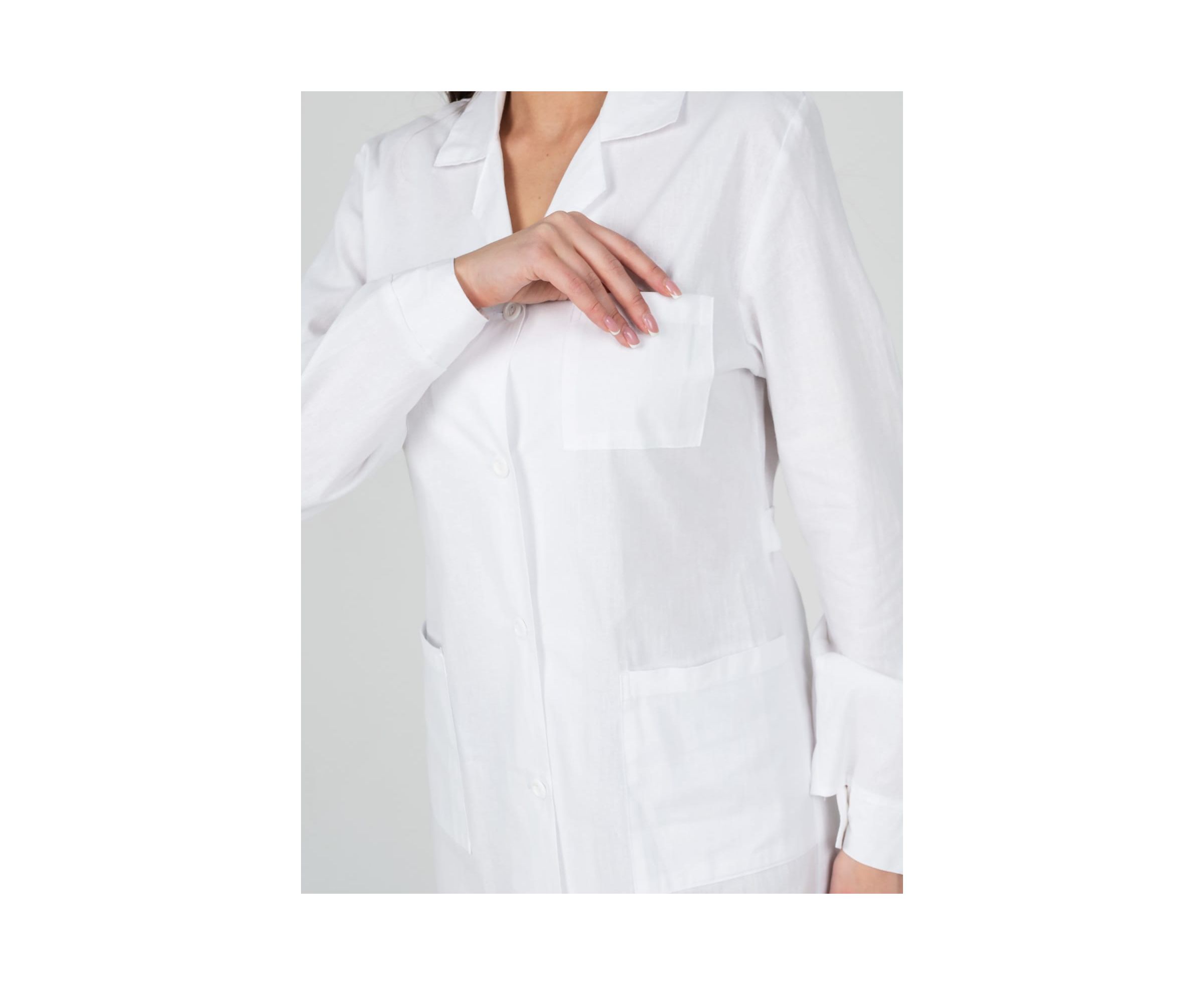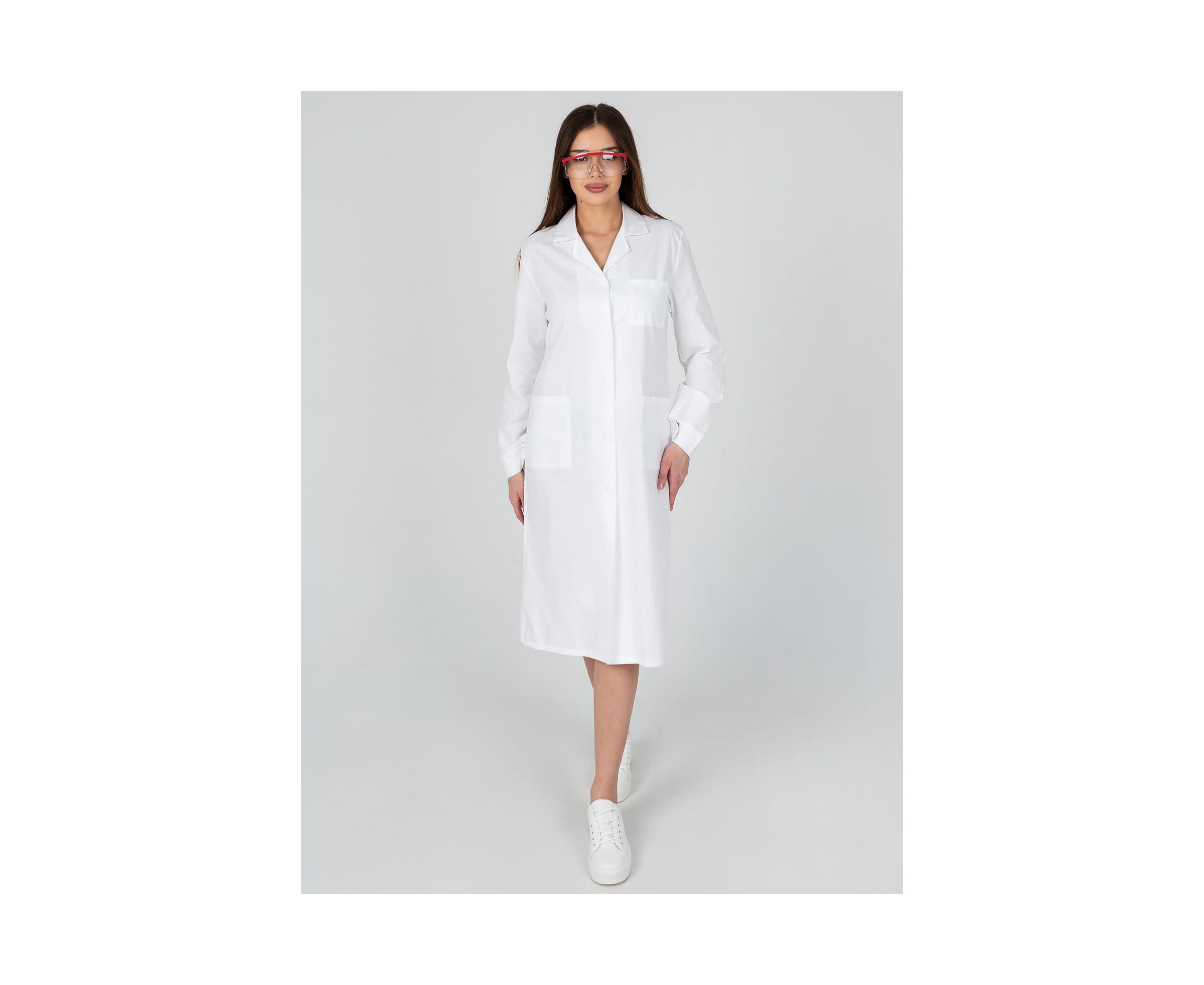 Халат ООО ГУП Бисер Бязь белый, р. 52-54, рост 158-164 4670132022315 оснащен тремя накладными карманами.