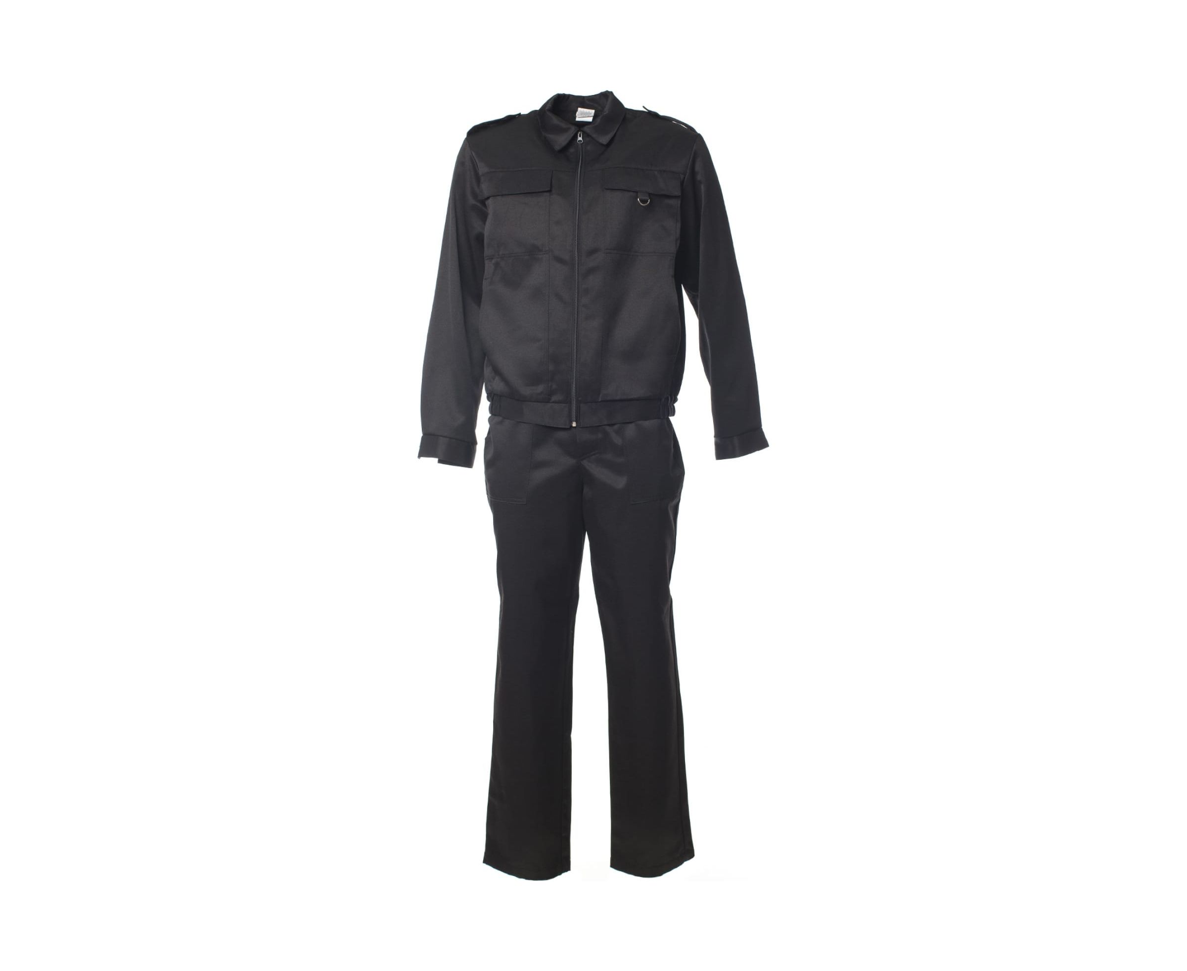 Летний костюм Спрут Охранник, черный, р. (52-54) 104-108/170-176 103951 состоит из куртки и брюк. Выполнен из смесовой ткани "Грета" с водоотталкивающей пропиткой.