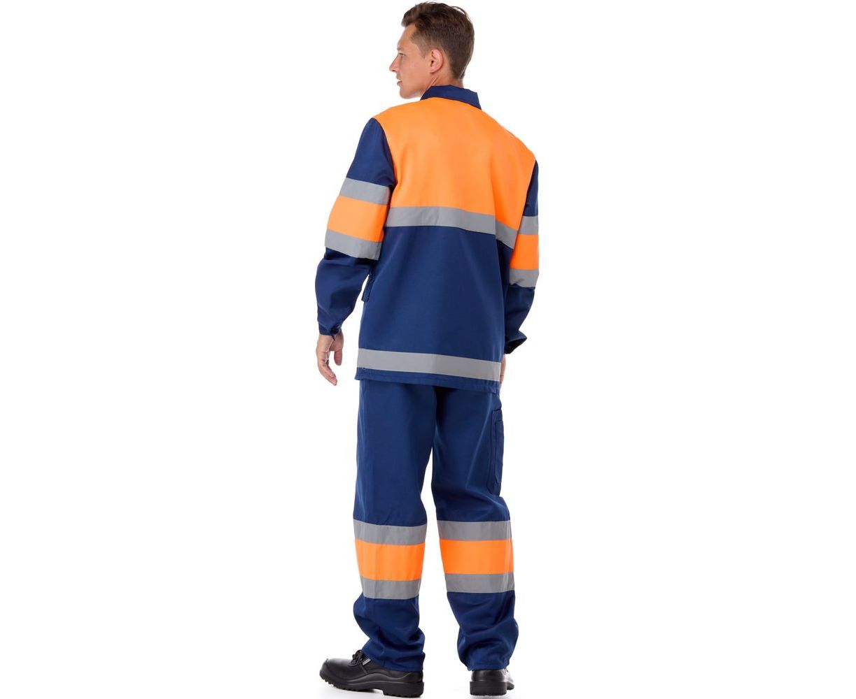 По низу, на груди, спине, рукавах куртки и по низу полукомбинезона расположены световозвращающие полосы шириной 50 мм для повышенной видимости работника.