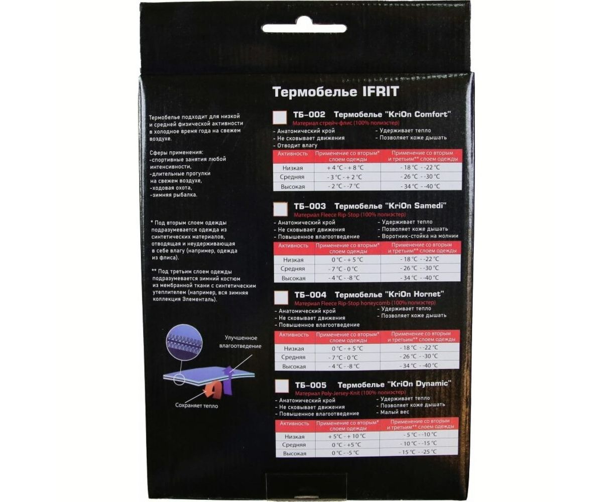 Термобелье Ifrit KriOn Samedi флис рип-стоп, р. 48 ТБ-003-48 подходит для спортивных занятий любой интенсивности, длительных прогулок на свежем воздухе, зимней рыбалки и т.д