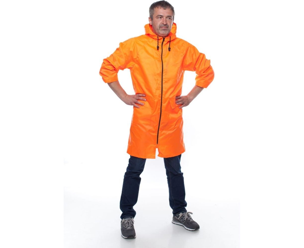 Влагозащитный облегченный плащ-дождевик БЕРТА 800-60-62, оранжевый – свободная модель с прямым кроем не стесняет движения, можно носить его на верхнюю одежду. Подойдет для различных видов деятельности: строительства, работы на открытом воздухе, для рыбалки, прогулок, походов, для работ в саду или огороде.