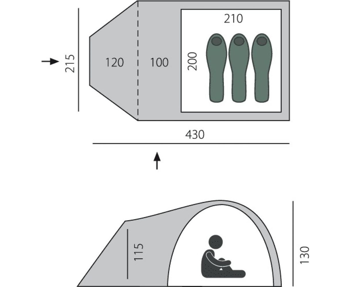 Модель снабжена двумя входами, вход в спальное отделение оснащен москитной сеткой. Есть увеличенный тамбур, два вентиляционных клапана, все швы проклеены.
