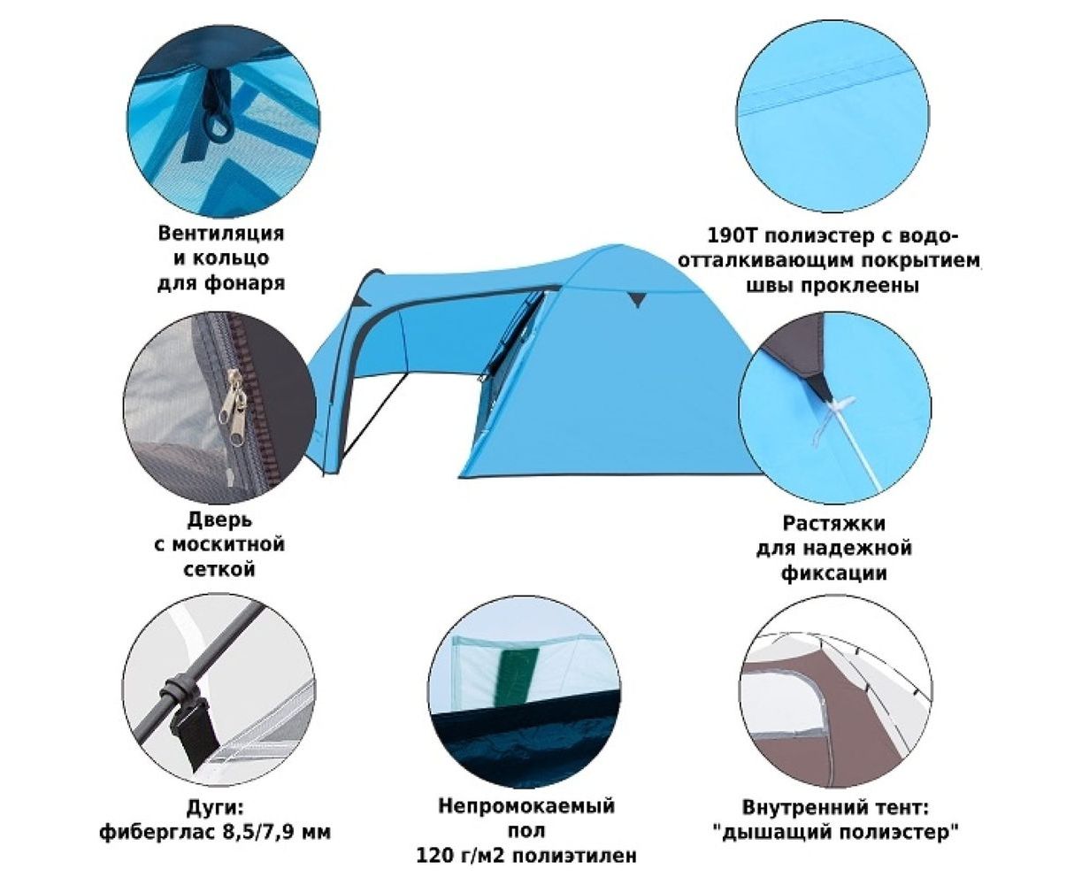 Палатка Green Glade Zoro 4 (4) предназначена для комфортного размещения четырех человек. Внешний тент имеет водоотталкивающую пропитку, благодаря которой защищает от ветра и дождя. Вместительный тамбур позволяет расположить внутри все необходимые вещи или снаряжение. Каркас палатки обладает повышенной прочностью и обеспечивает хорошую устойчивость на поверхности.
