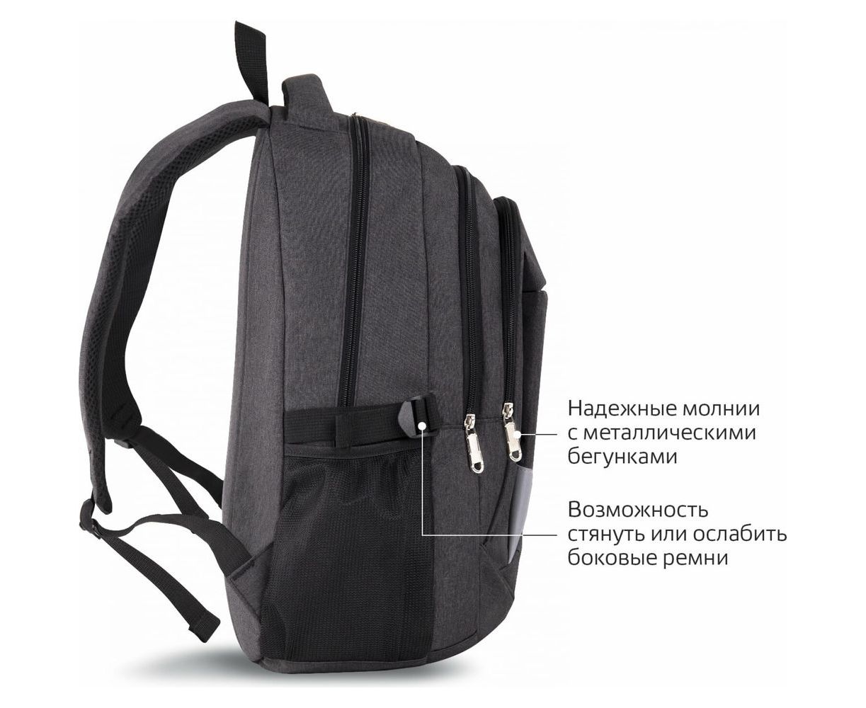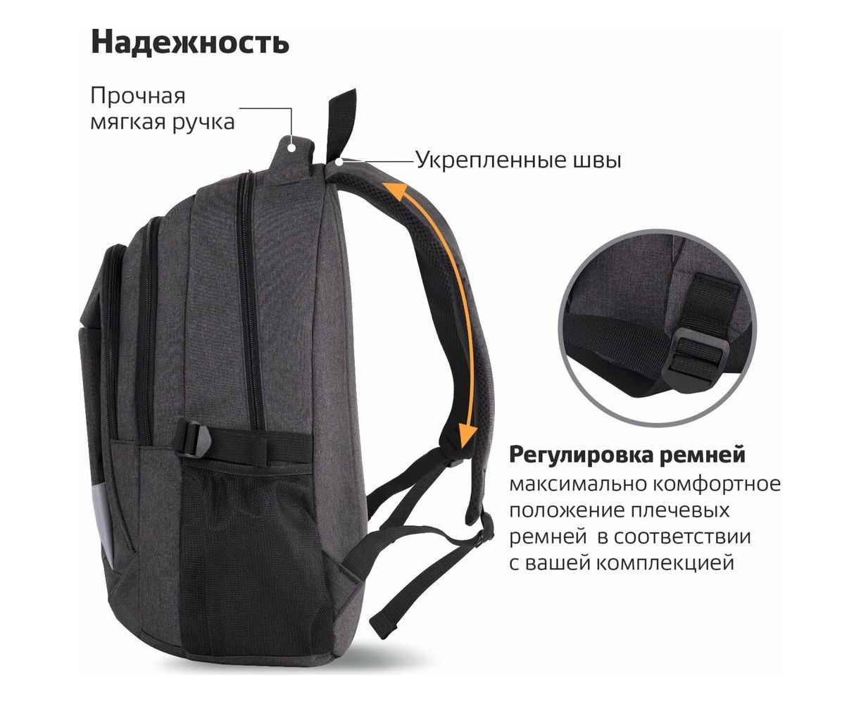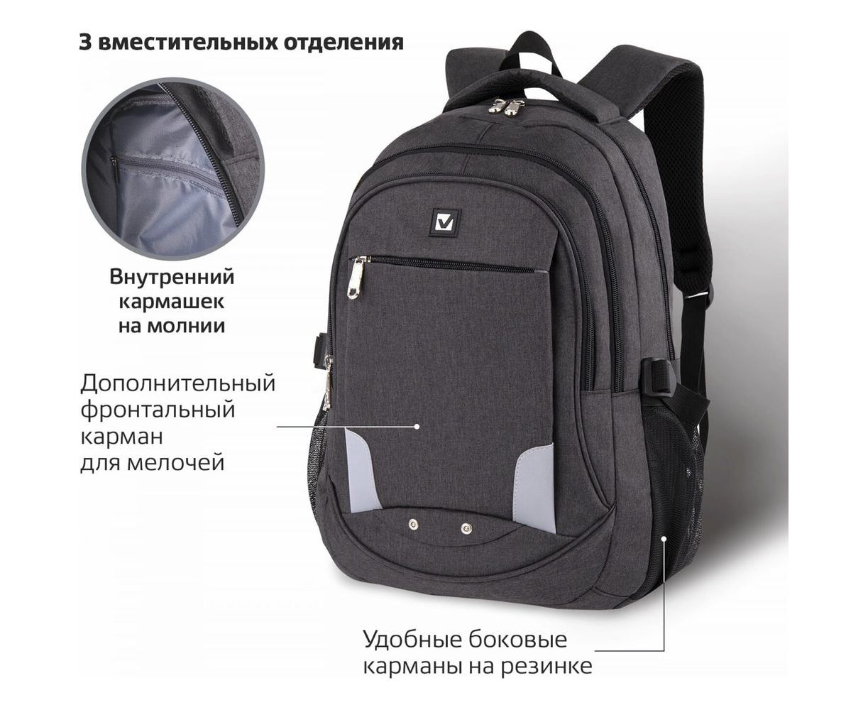 Универсальный рюкзак BRAUBERG 3 отделения, темно-серый, 46x31x18см 270759 подойдет для старшеклассников и студентов.