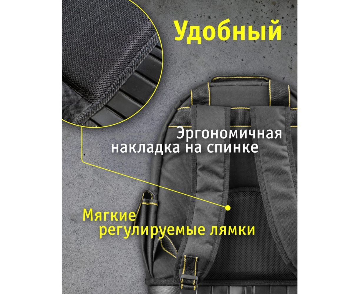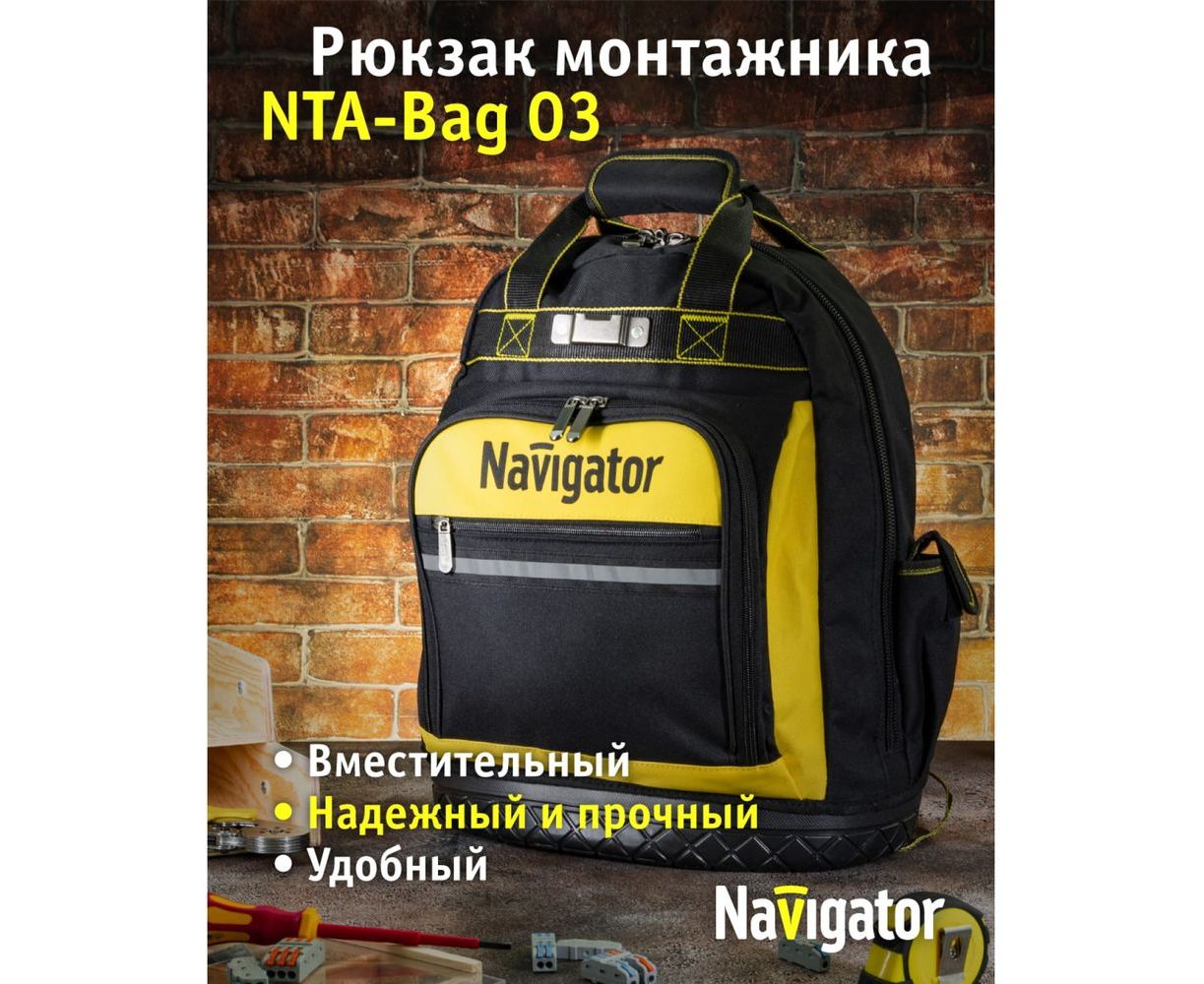 Рюкзак Navigator NTA-Bag03 резиновое дно, 460х360х180 мм 80265 используется для переноски и хранения монтажных принадлежностей, различных инструментов и средств индивидуальной защиты.