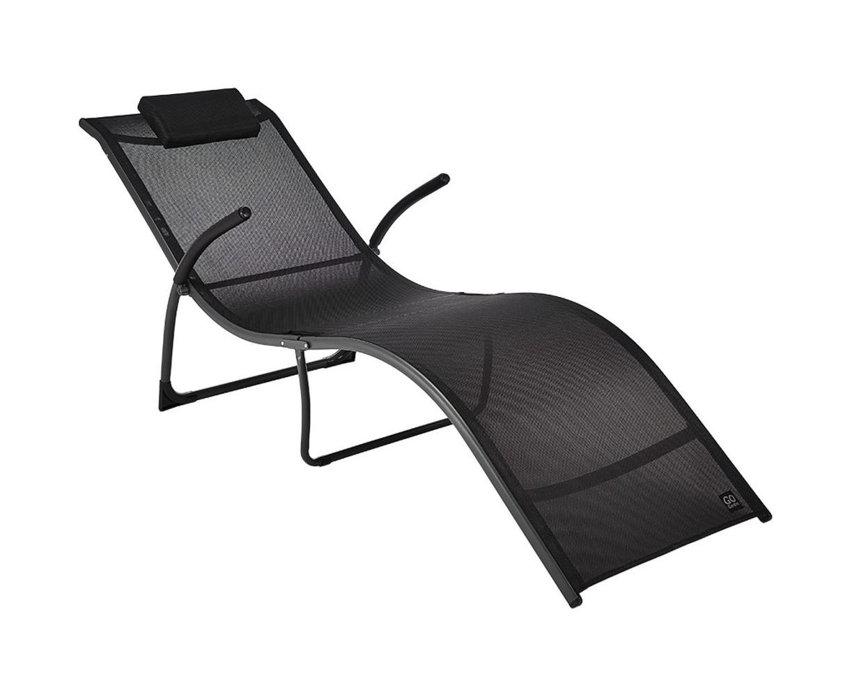 Складной садовый шезлонг GoGarden ACADIA 183x55x70 см, черный 50312