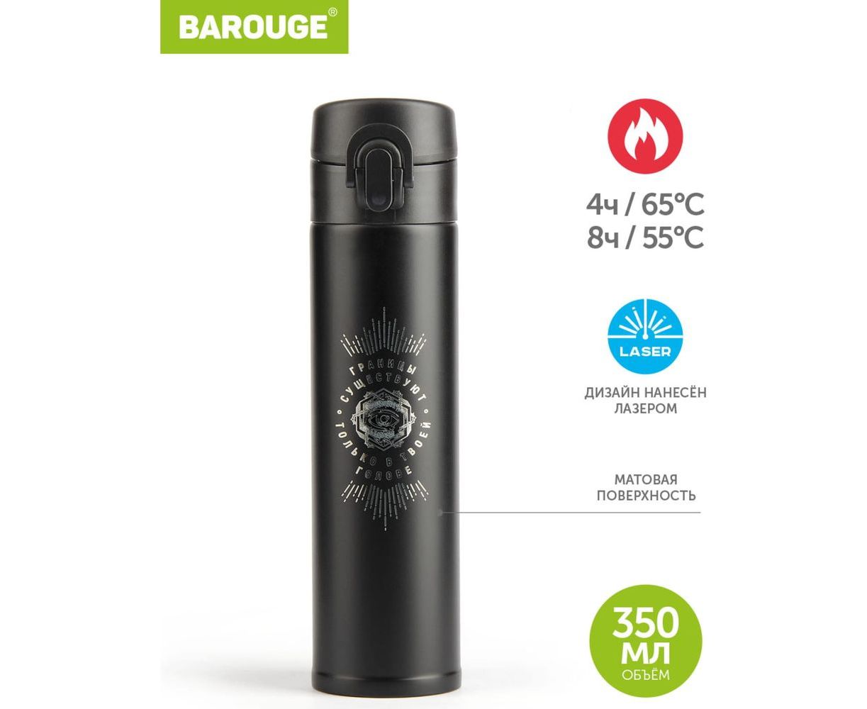 Термобутылка BAROUGE Travel Bottle черная, границы сознания, из нержавеющей стали BT-148 350 мл/черный/границы сознания/бутылка