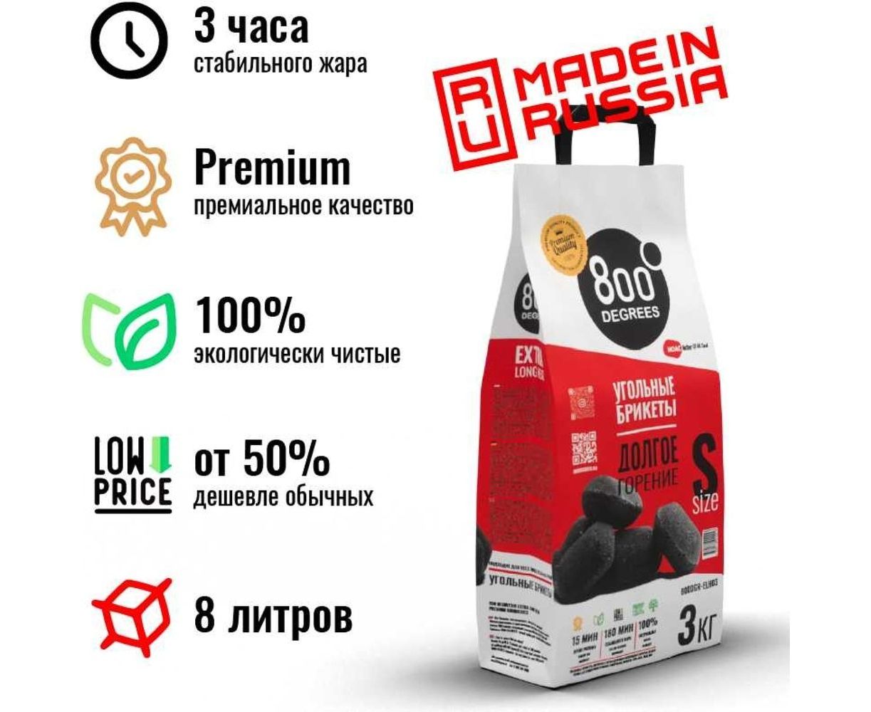 Уголь брикеты 800 Degrees Долгое Горение, мешок 3 кг 800DGR-ELH03