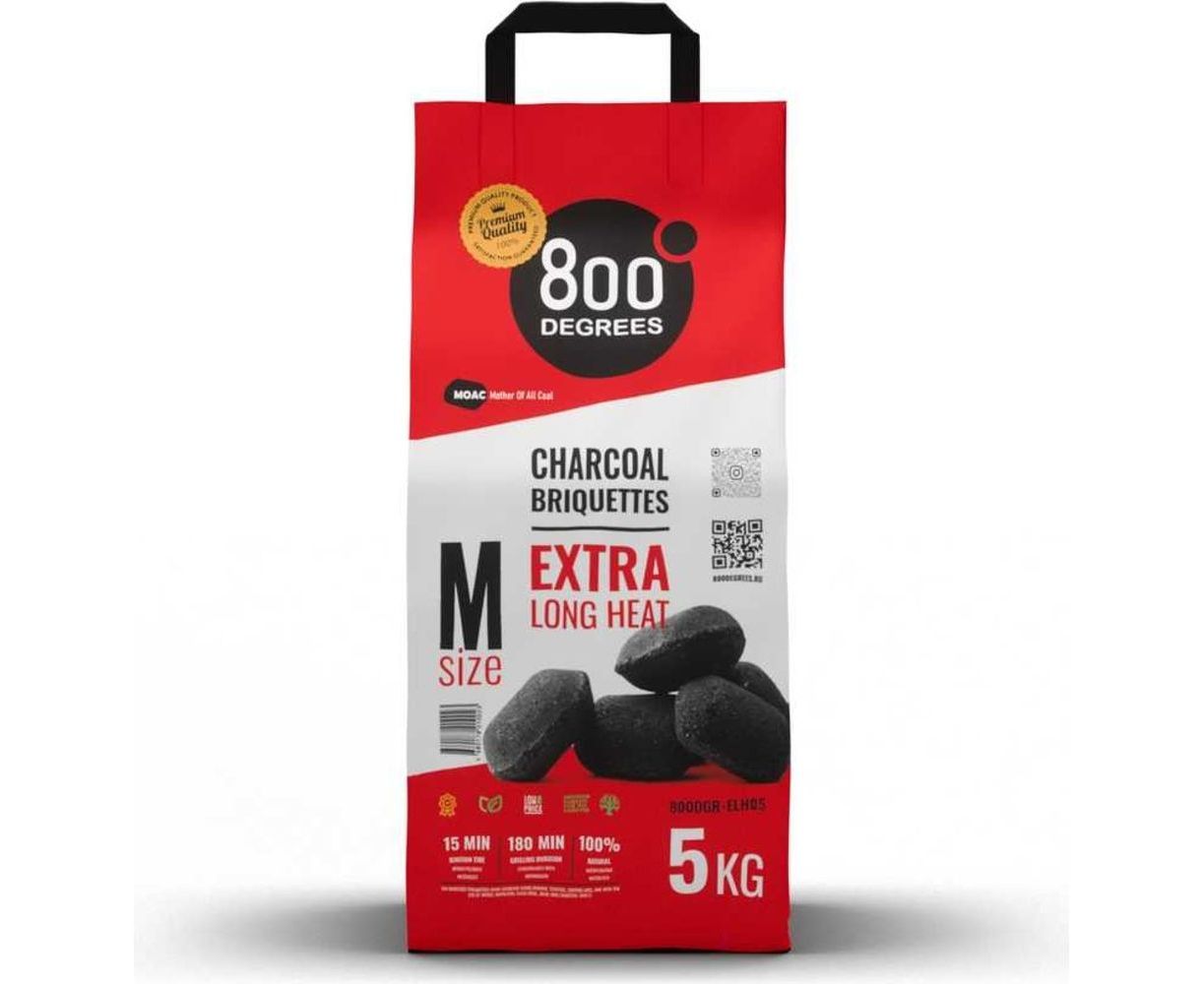 Уголь брикеты 800 Degrees Долгое Горение, мешок 5 кг 800DGR-ELH05