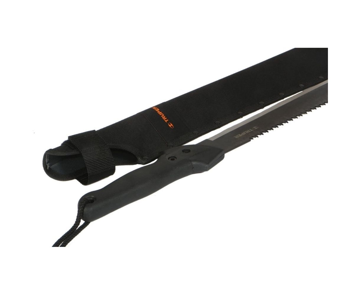 Двустороннее мачете 450мм с чехлом Truper MACH-18Х 13098 представляет собой режущий инструмент "2 в 1", который сочетает в себе большой нож с закругленным кончиком и зубчатую пилу. Для безопасного хранения и транспортировки изделия предусмотрен чехол на лезвие.