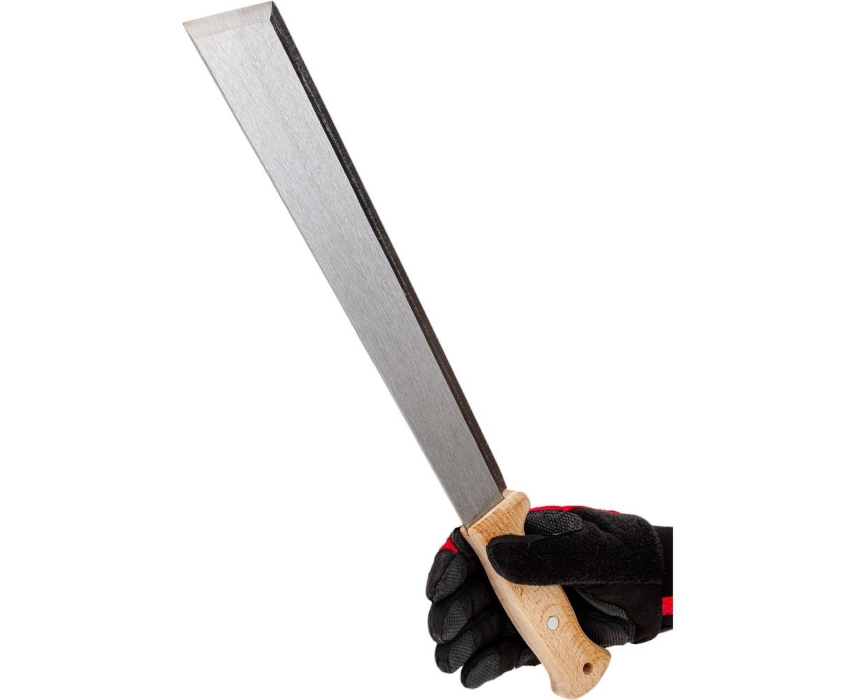 Лезвие изготовлено из высококачественной закаленной инструментальной стали толщиной 0,4 см, а рукоятка выполнена из дерева.